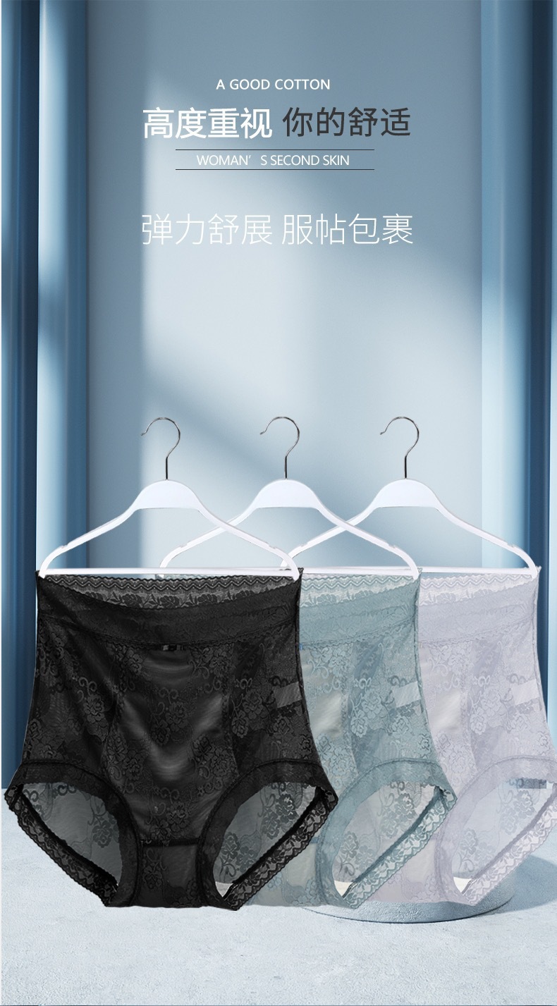 레이스 속옷 여성의 섹시한 높은 허리 복부 통기성 뽕나무 실크 항균 바닥 순수한 욕망 여성의 플러스 사이즈 브리핑