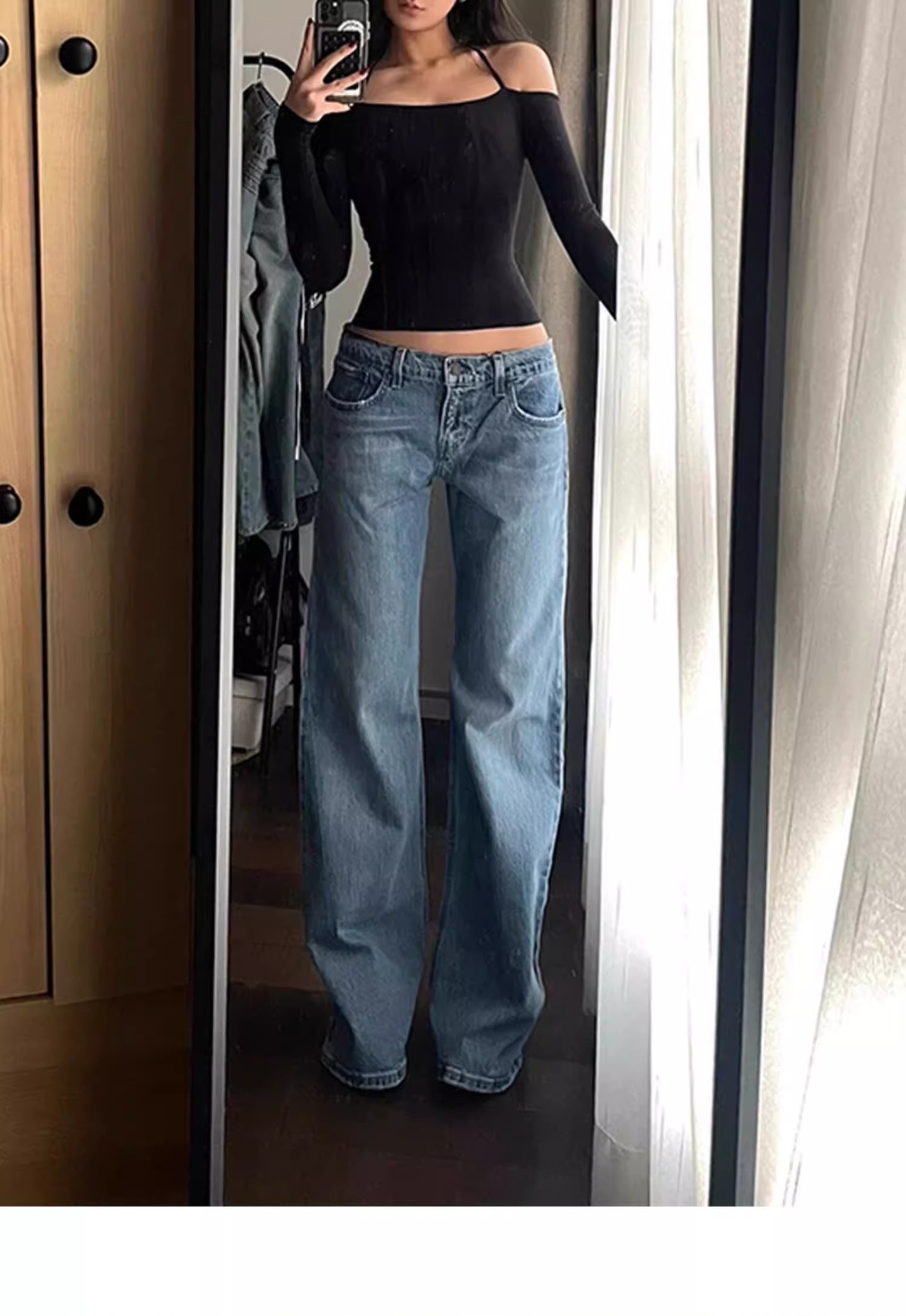 유럽과 미국의 스타일 레트로 핫 소녀 스타일 낮은 허리 청바지 여성의 마이크로 플레어 바지 캐주얼 양념 바지스토어 가기