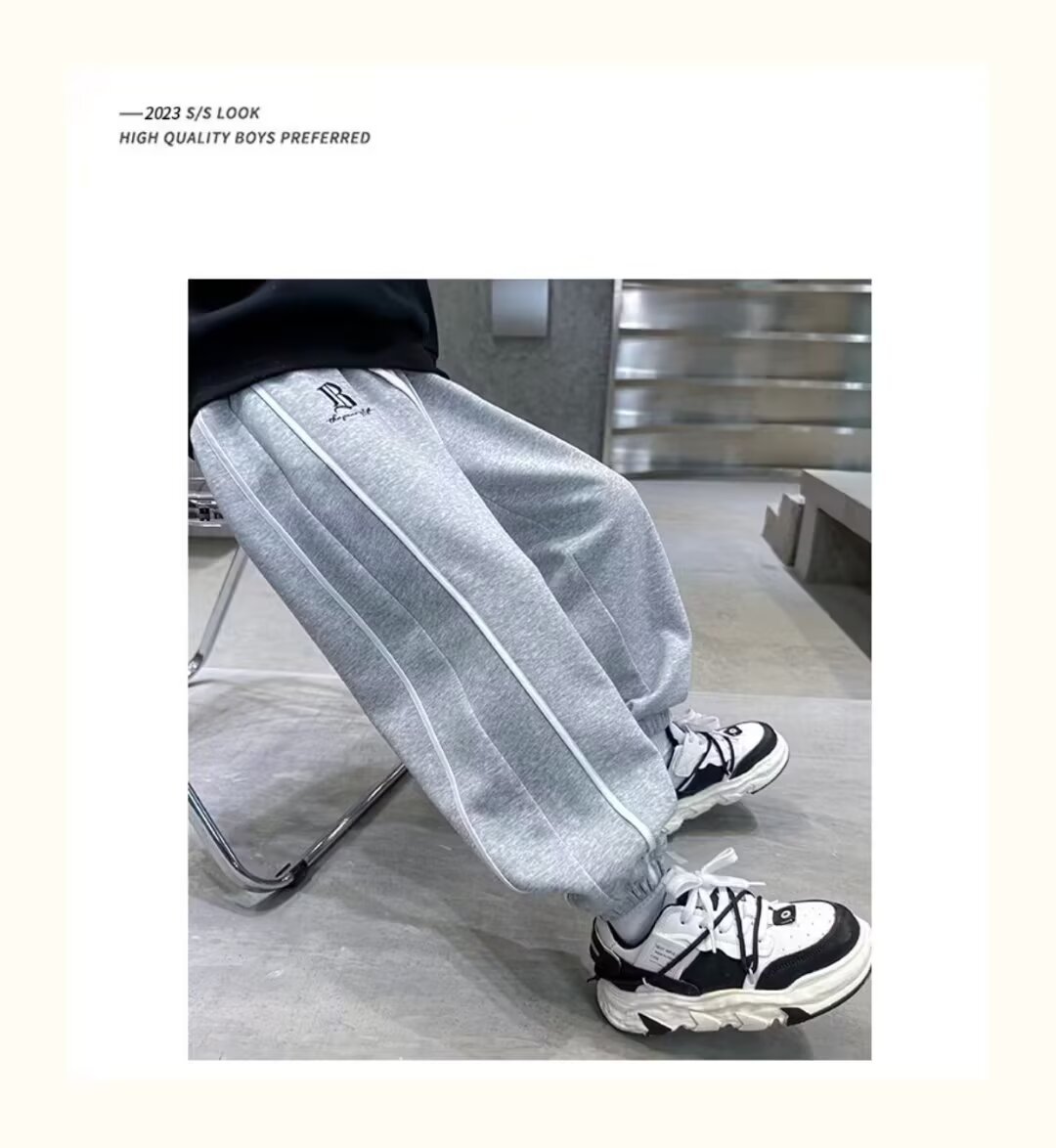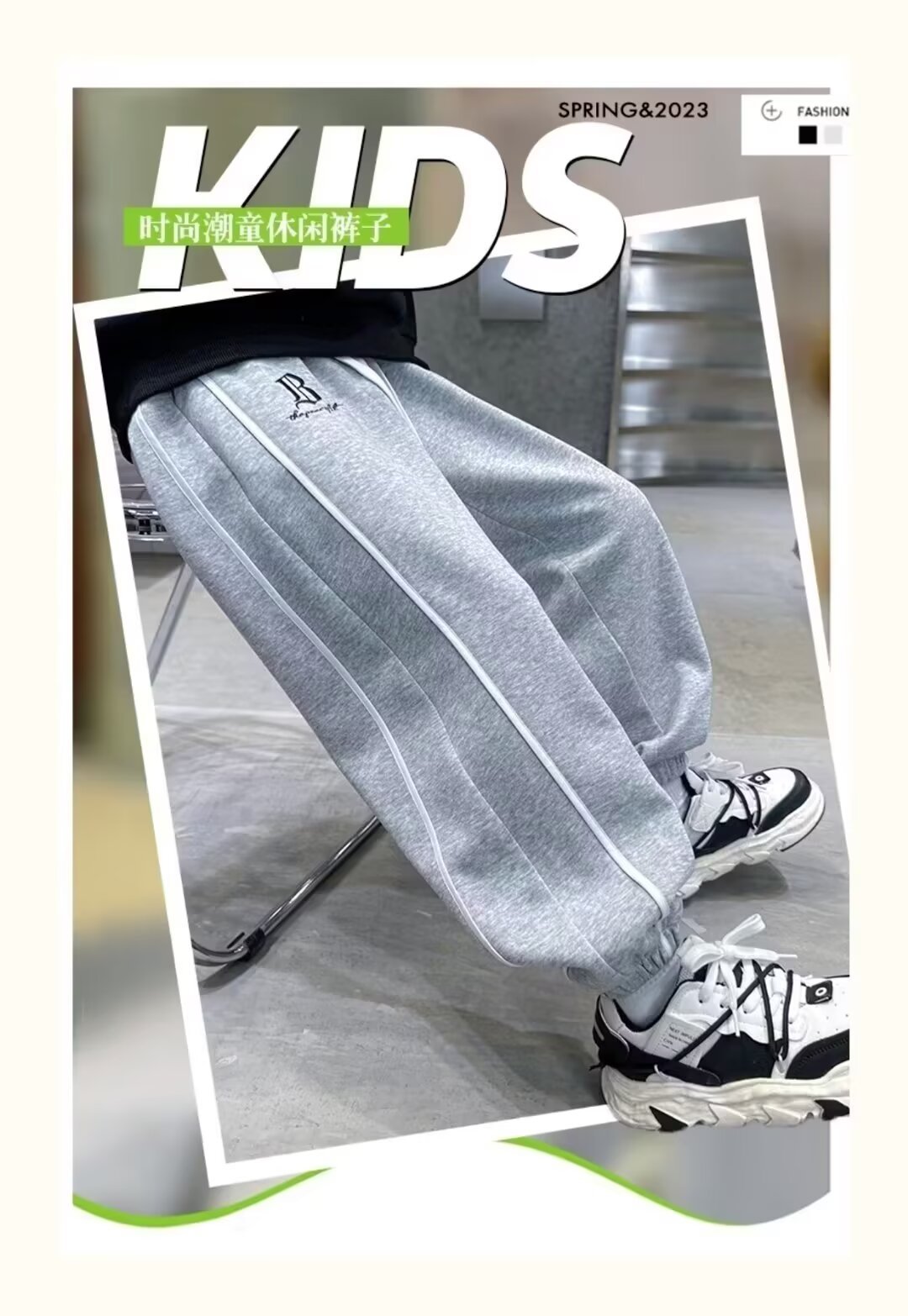 2024 가을/겨울 새로운 홍콩 스타일 줄무늬 캐주얼 바지 소년 느슨한 스트레이트 발 바지 기모 바지스토어 가기
