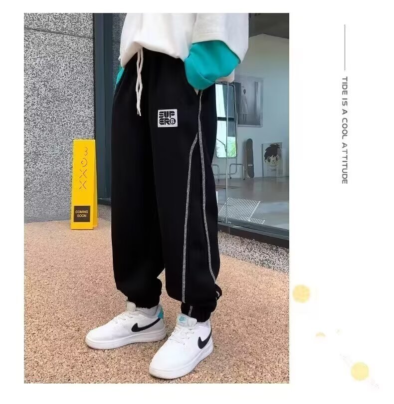아동복 소년 가을 바지 2024 새로운 스타일 중대형 어린이 가을 바지 소년 스포츠 바지 봄과 가을 운동복