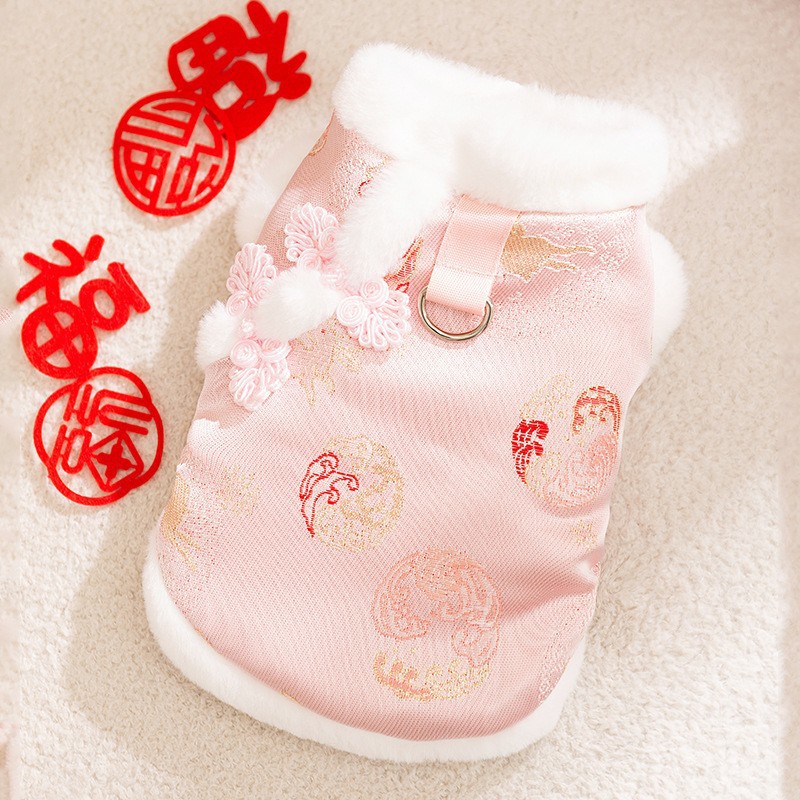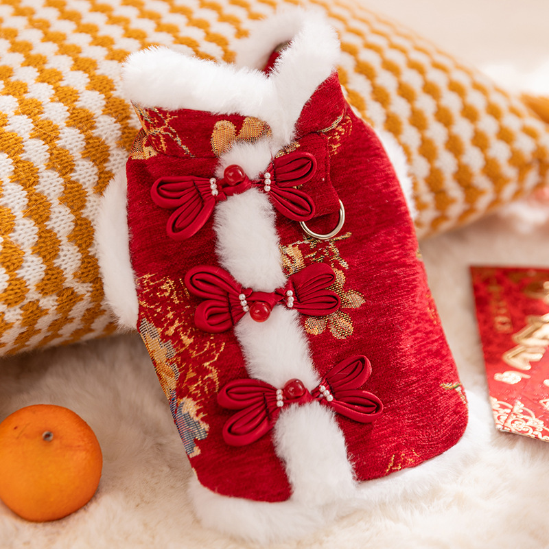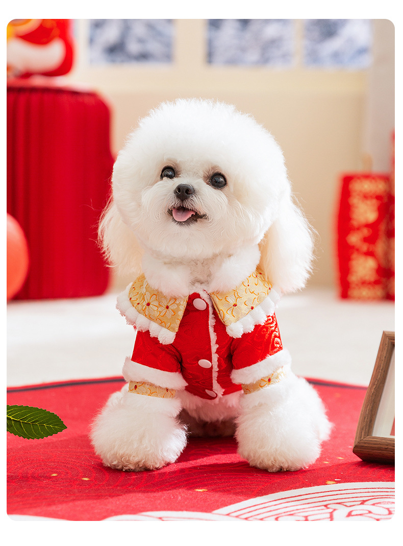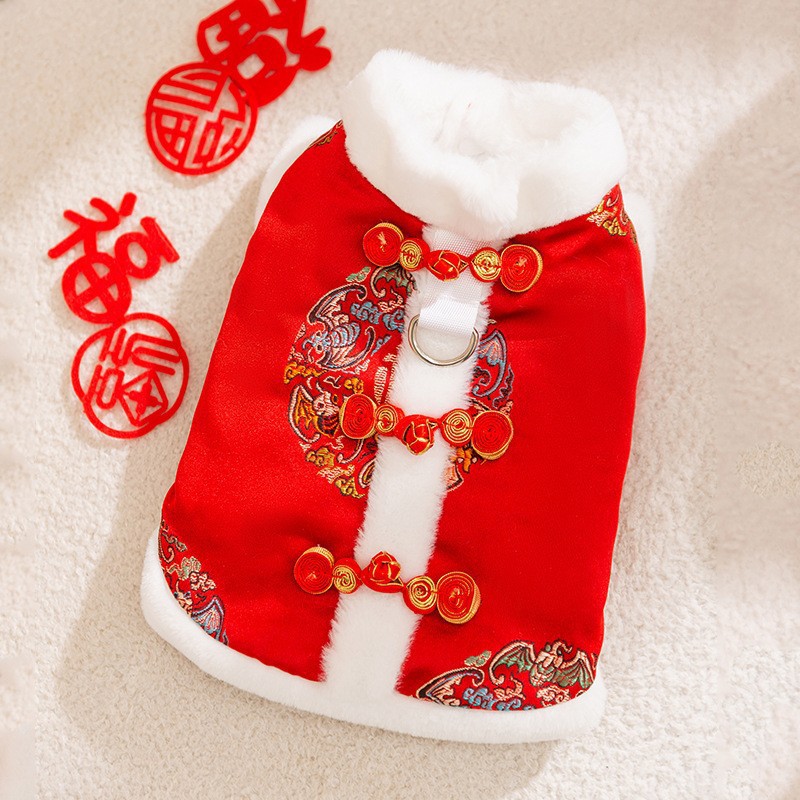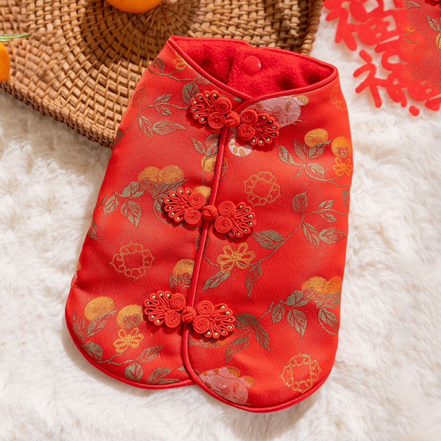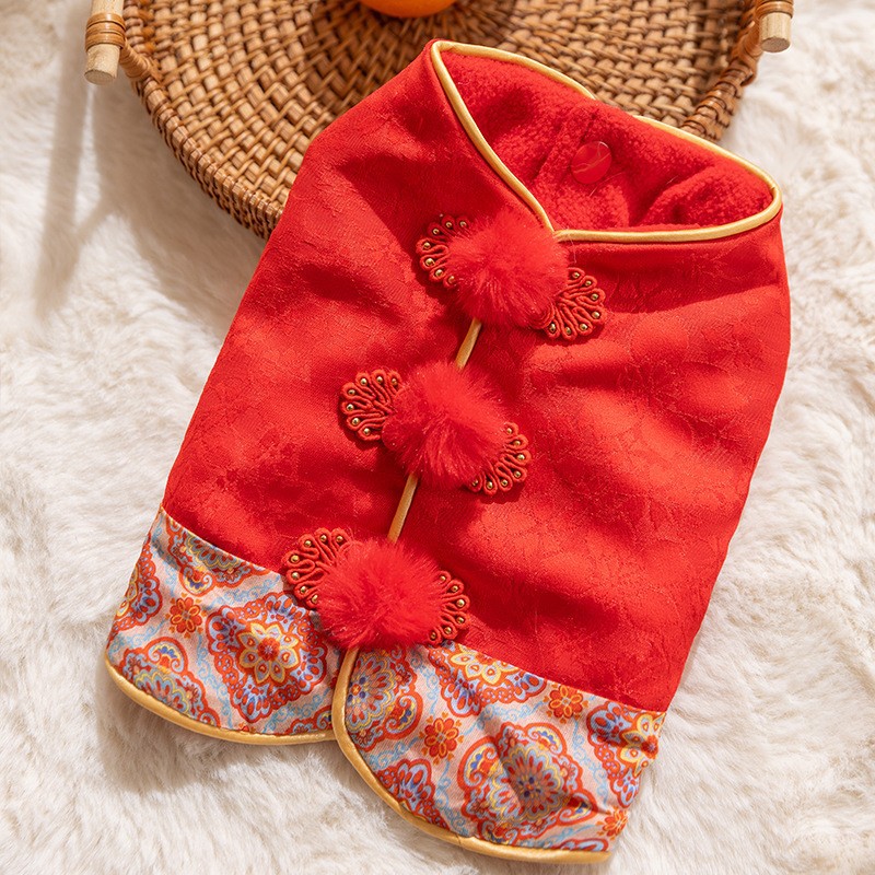 새해 개 옷 가을, 겨울 중국 스타일 축제 작은 개 새해 옷 고양이 면화 조끼 애완 동물 당나라 정장