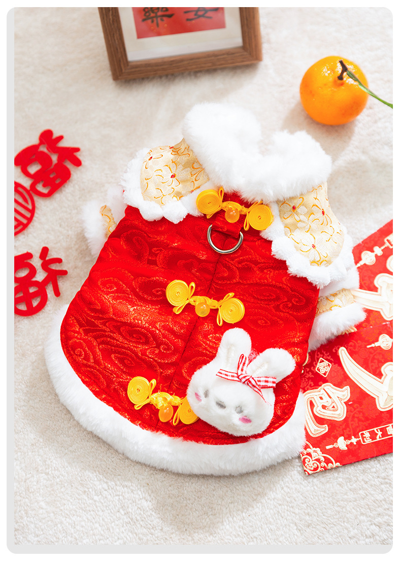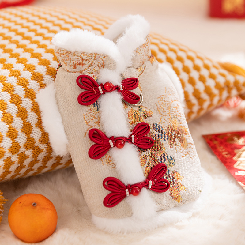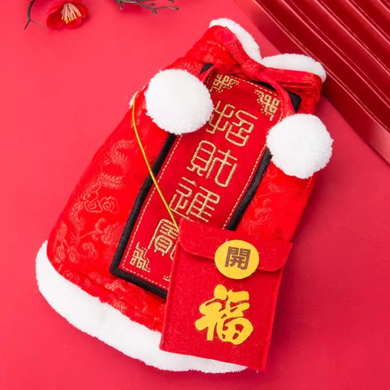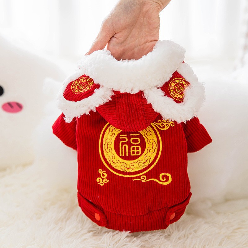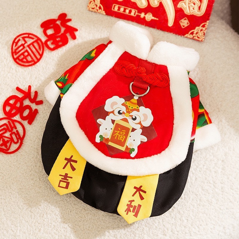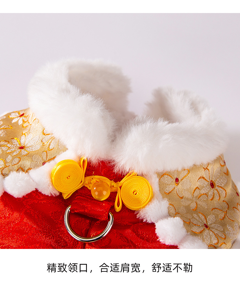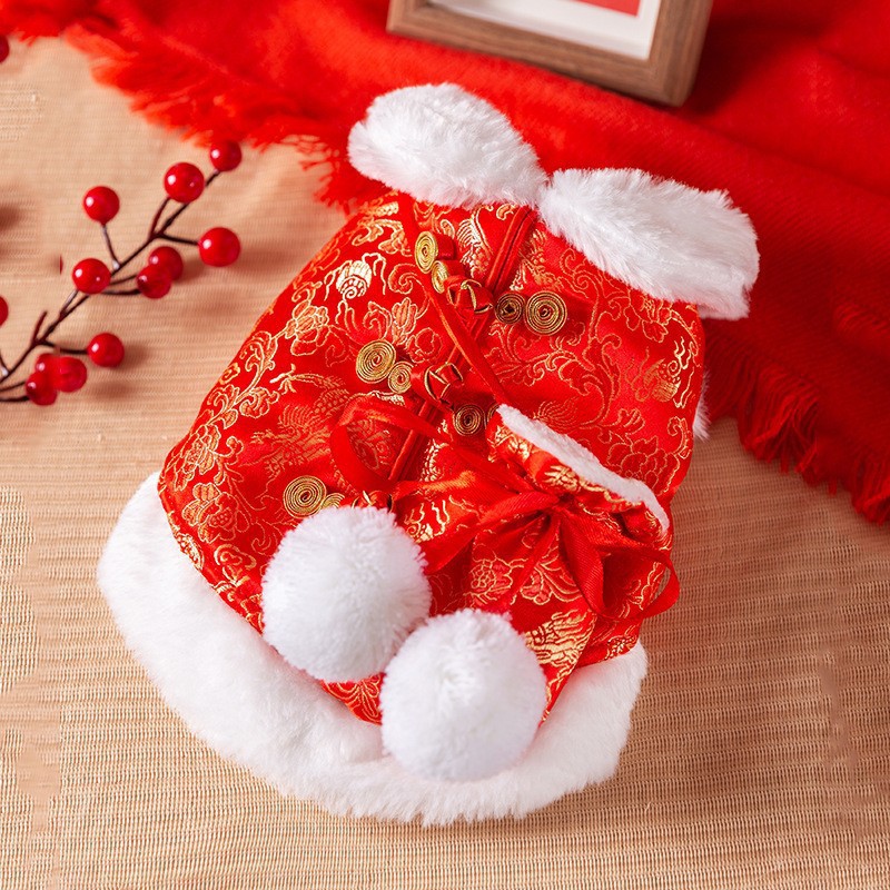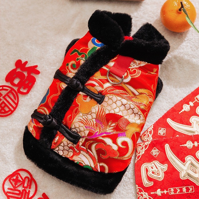 새해 개 옷 가을, 겨울 중국 스타일 축제 작은 개 새해 옷 고양이 면화 조끼 애완 동물 당나라 정장