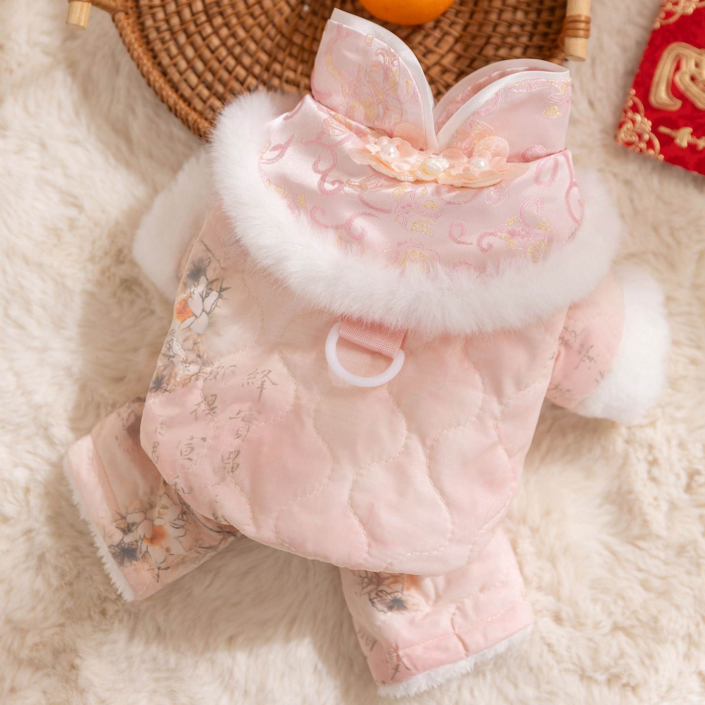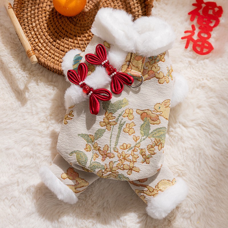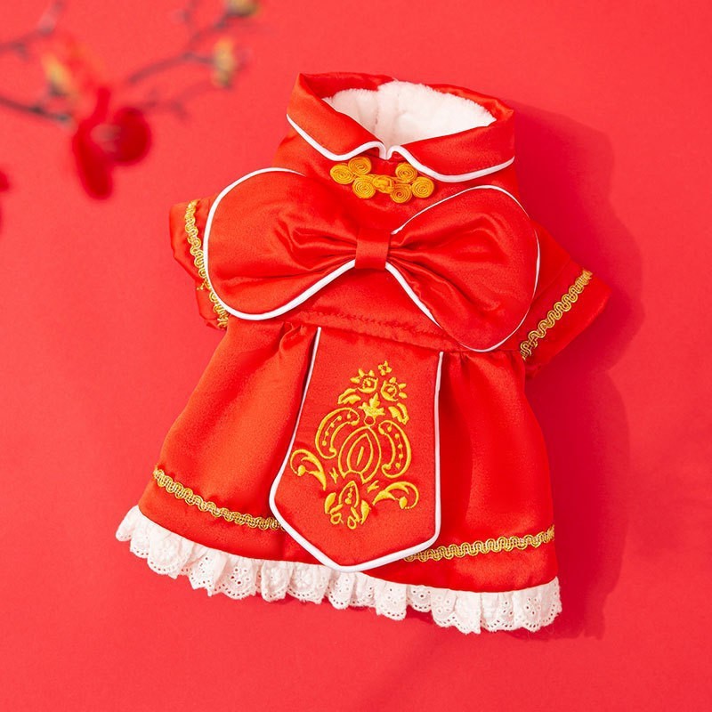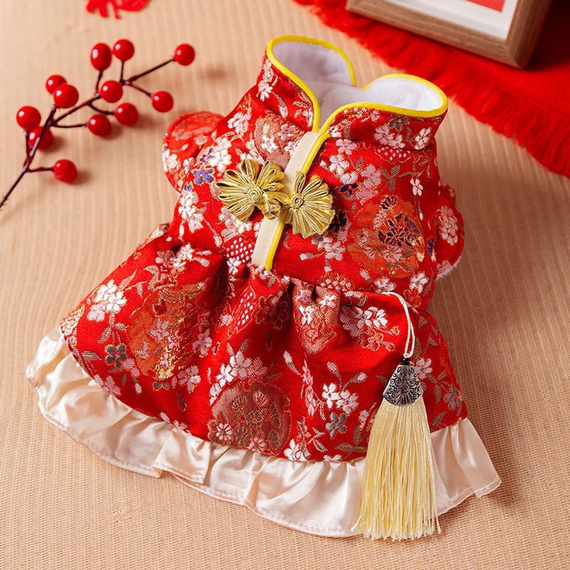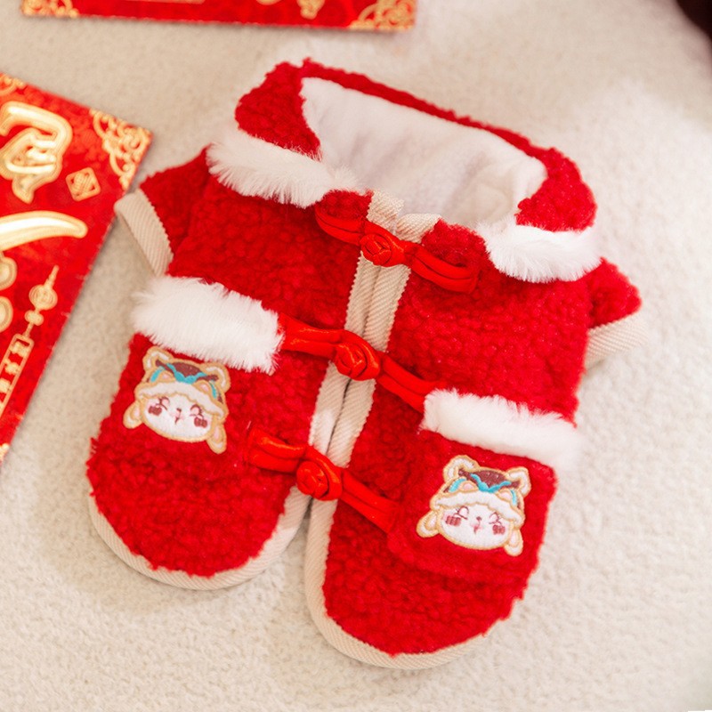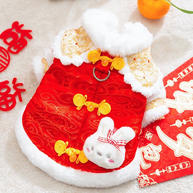 새해 개 옷 가을, 겨울 중국 스타일 축제 작은 개 새해 옷 고양이 면화 조끼 애완 동물 당나라 정장