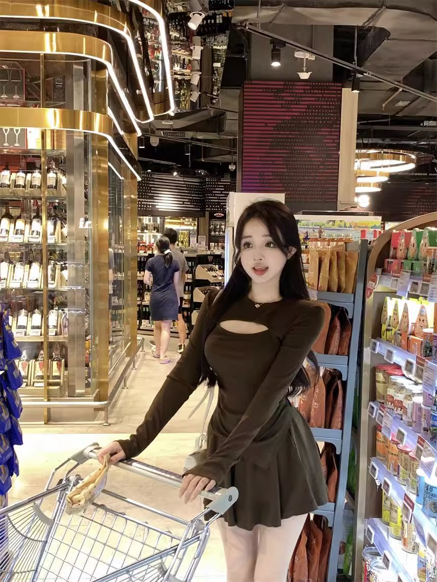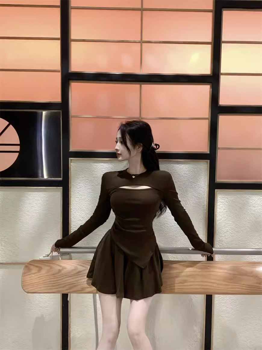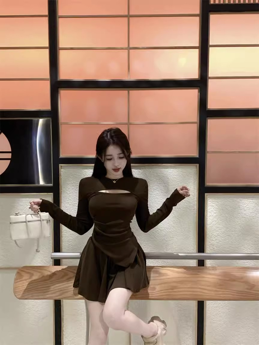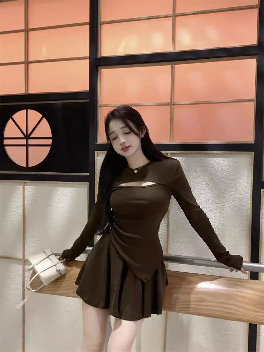 순수한 달콤한 스파이스 소녀 작은 세트 여성 디자인 크루 넥 할로우 아웃 코우 보드 머신 탑 하이 웨이스트 컬로 테스 투피스 세트스토어 가기