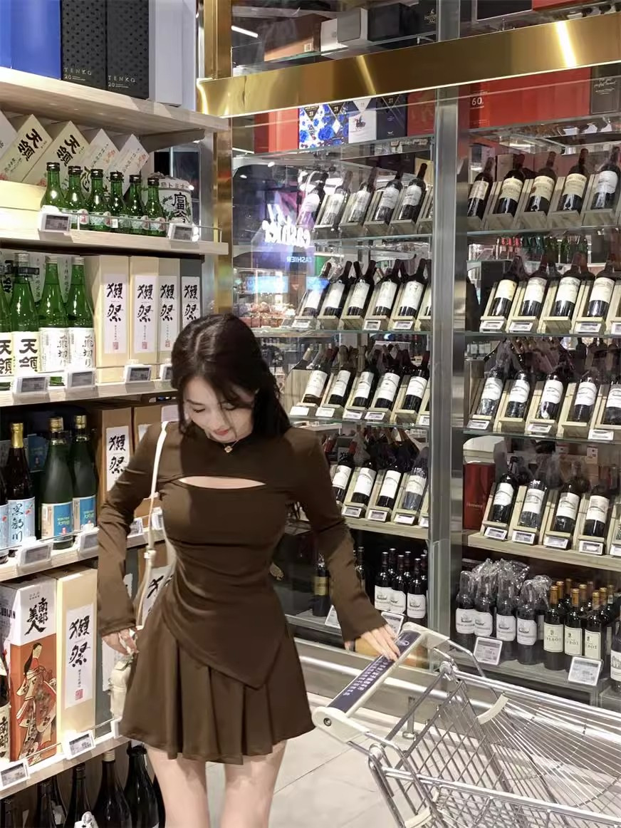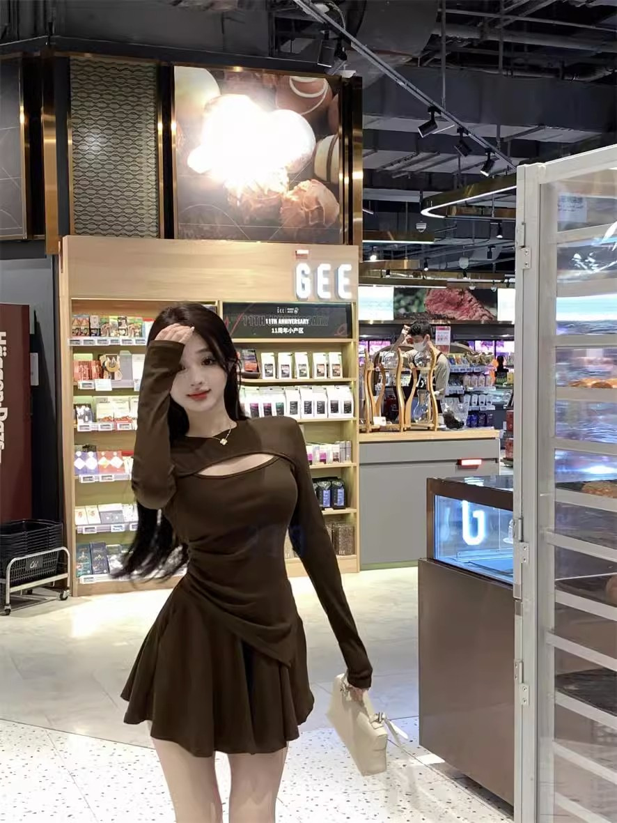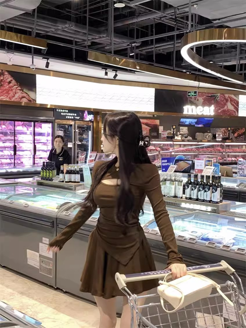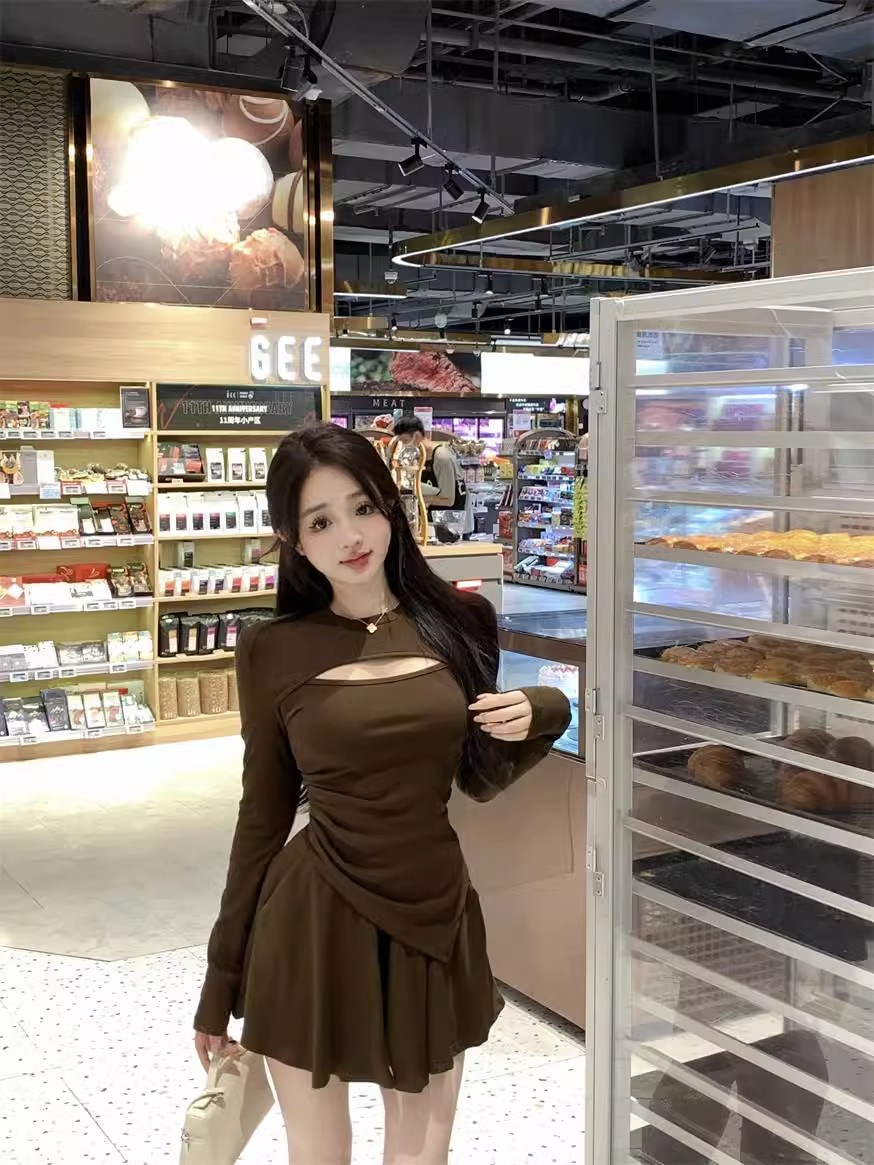 순수한 달콤한 스파이스 소녀 작은 세트 여성 디자인 크루 넥 할로우 아웃 코우 보드 머신 탑 하이 웨이스트 컬로 테스 투피스 세트스토어 가기