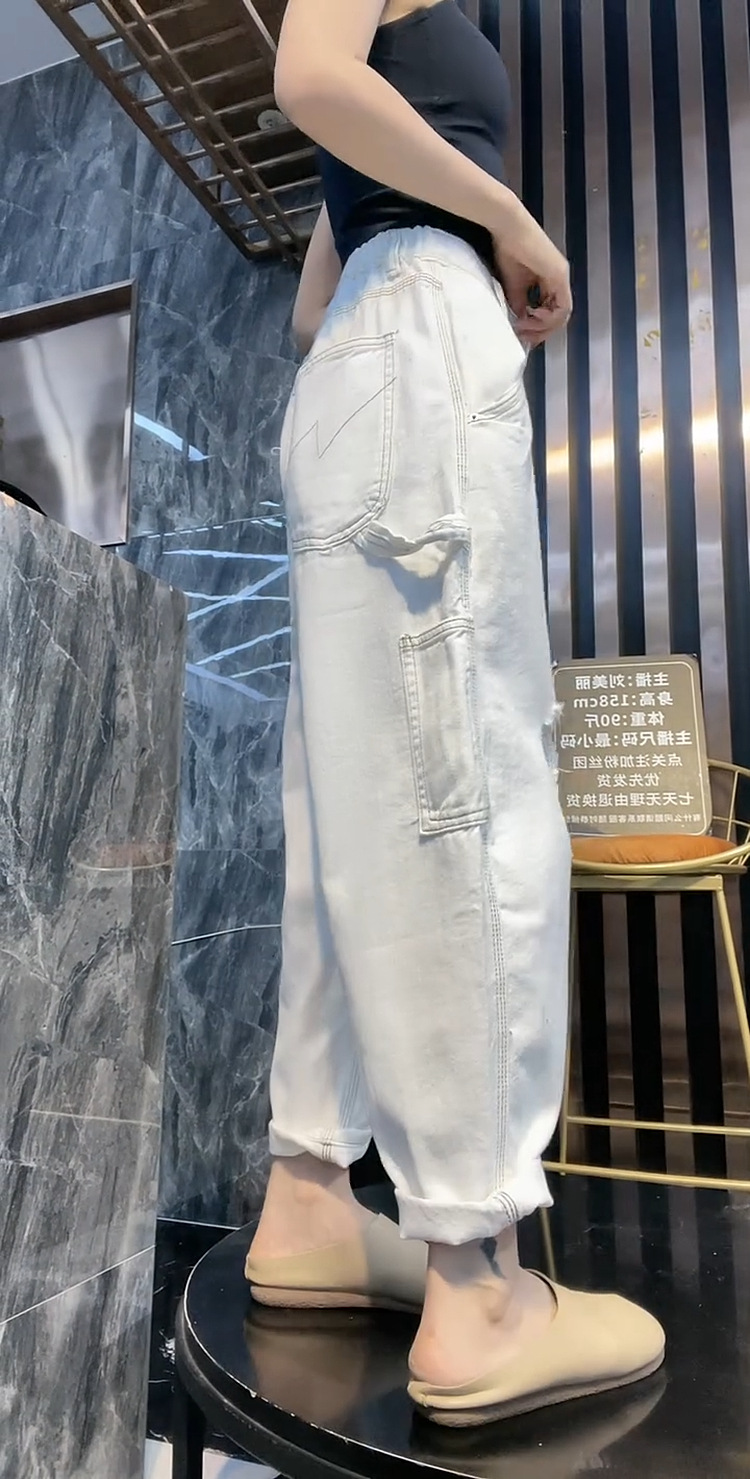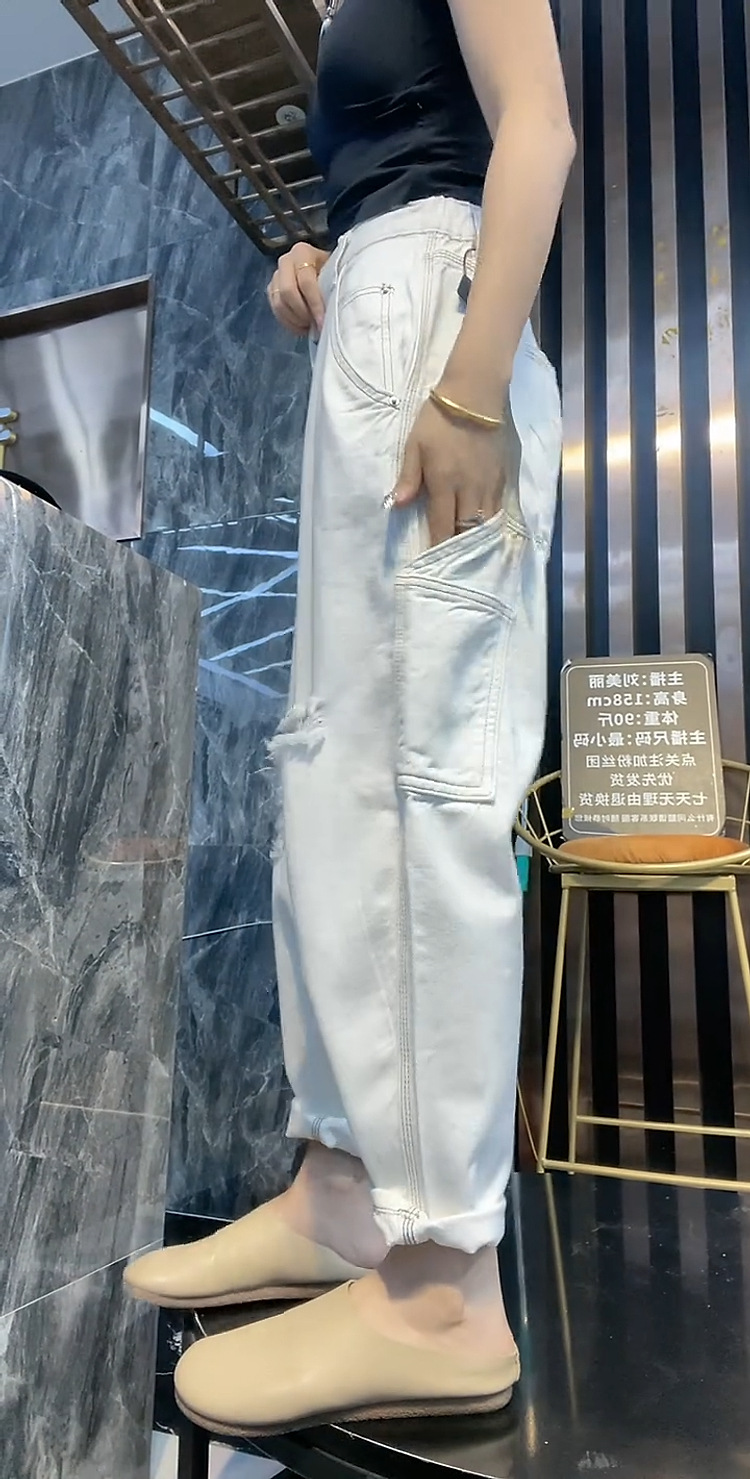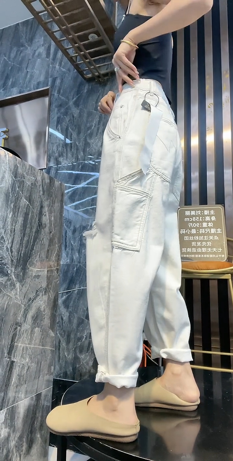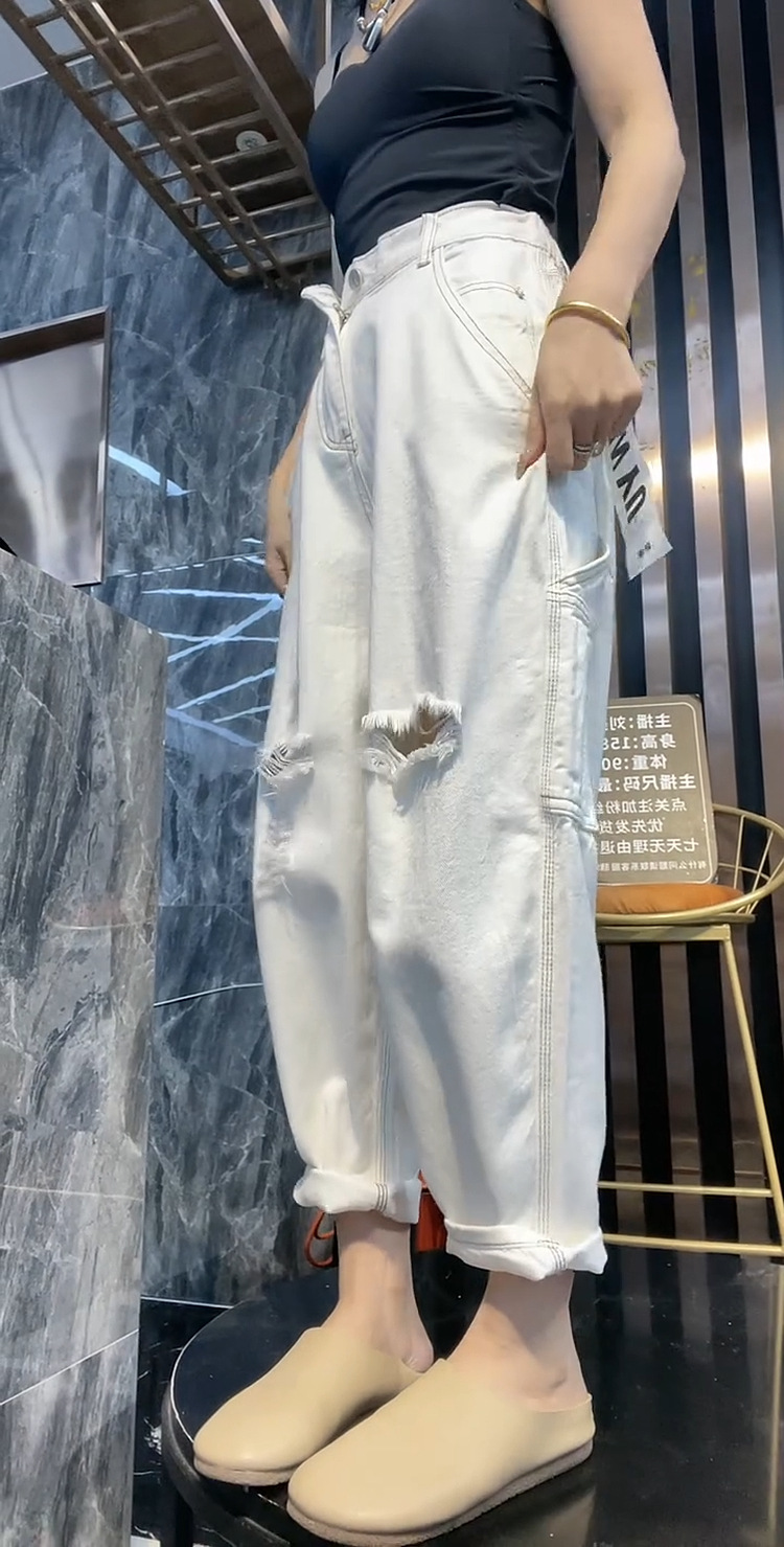 배 모양의 그림 플러스 사이즈 흰색 구멍 Harlan 청바지 여성의 봄과 가을 느슨한 슬리밍 크롭 와이드 레그 바지스토어 가기