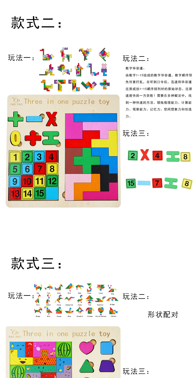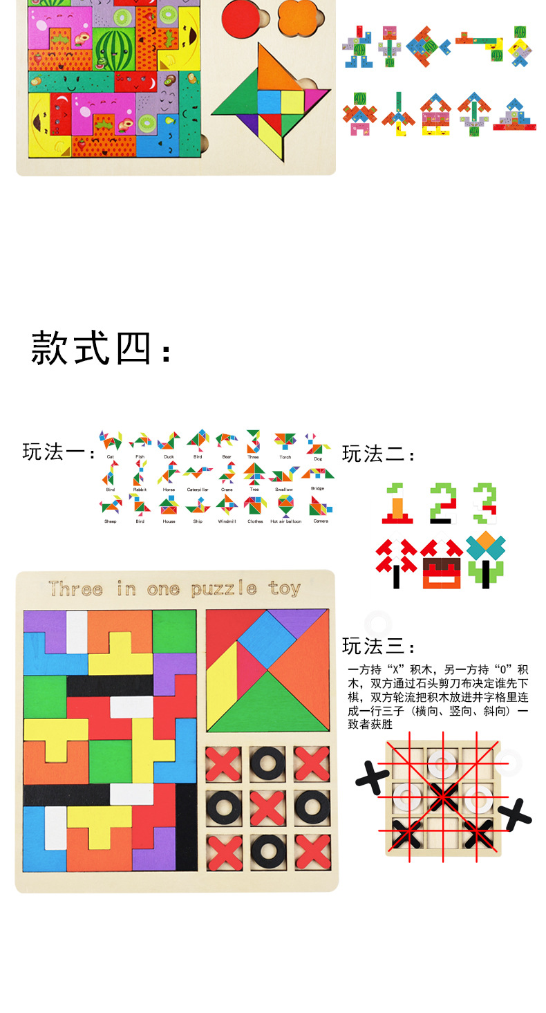 나무 어린이 퍼즐 테트리스 탕람 게임 체스 3 대 1 퍼즐 빌딩 블록 조기 교육 장난감 빌딩 블록스토어 가기