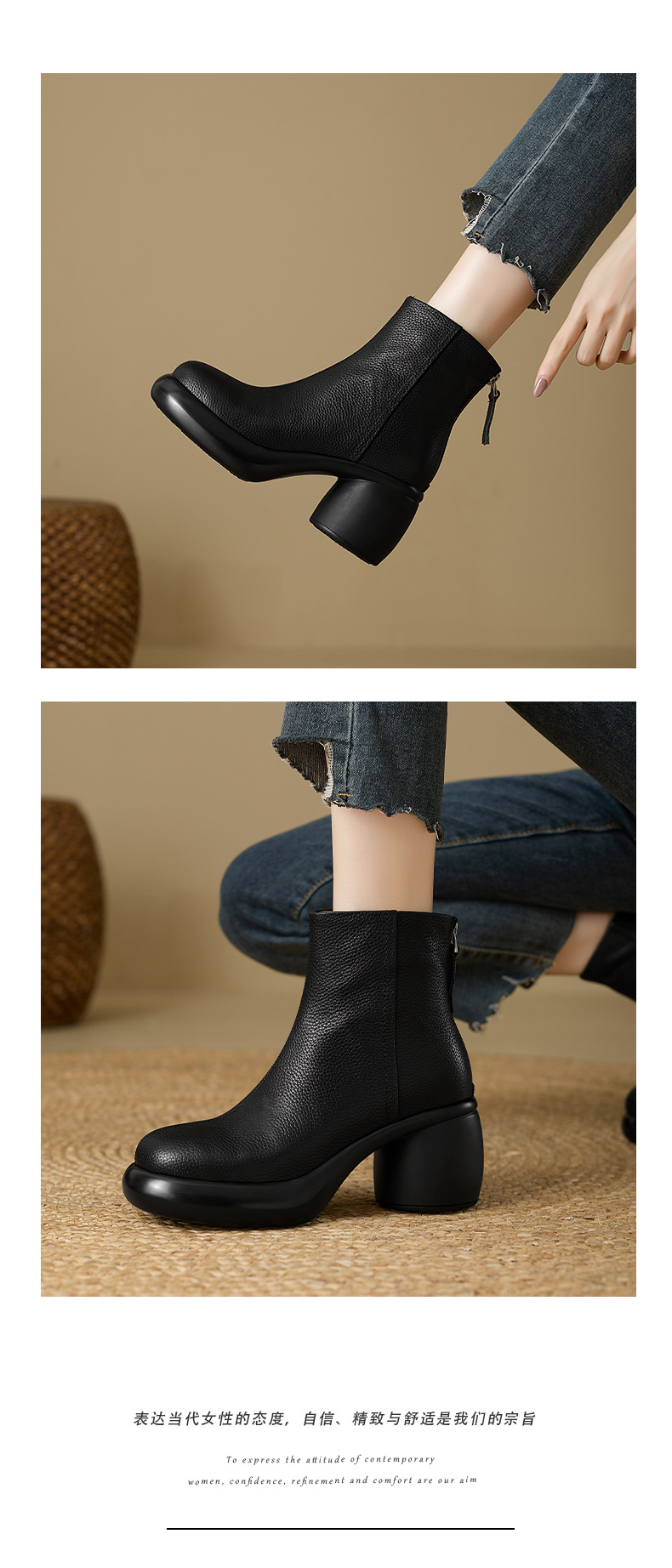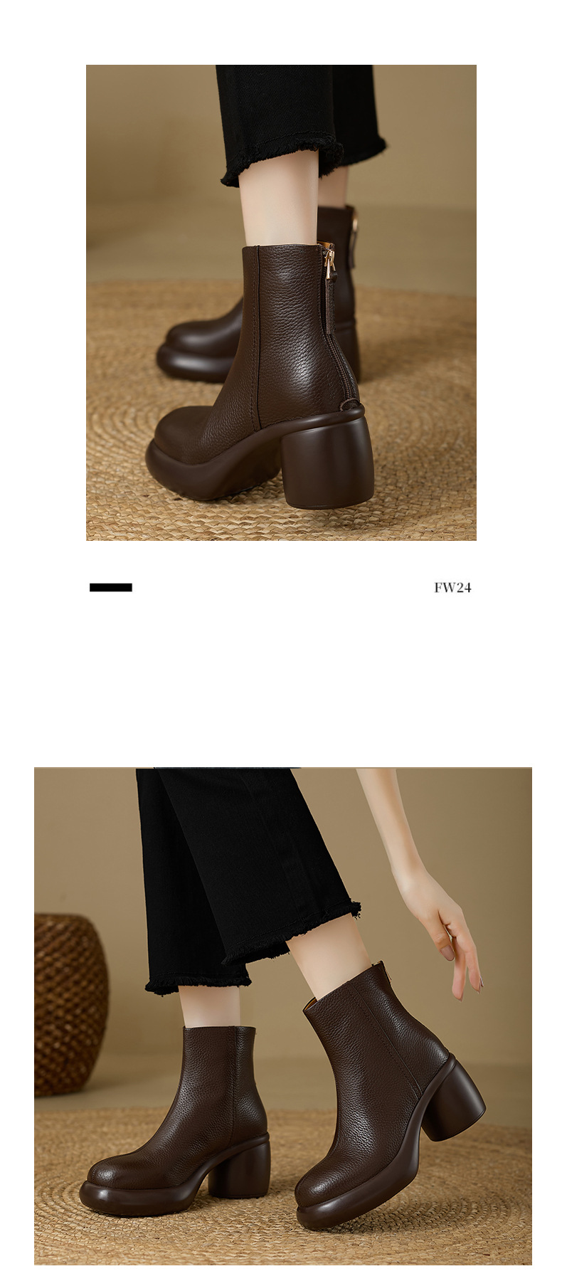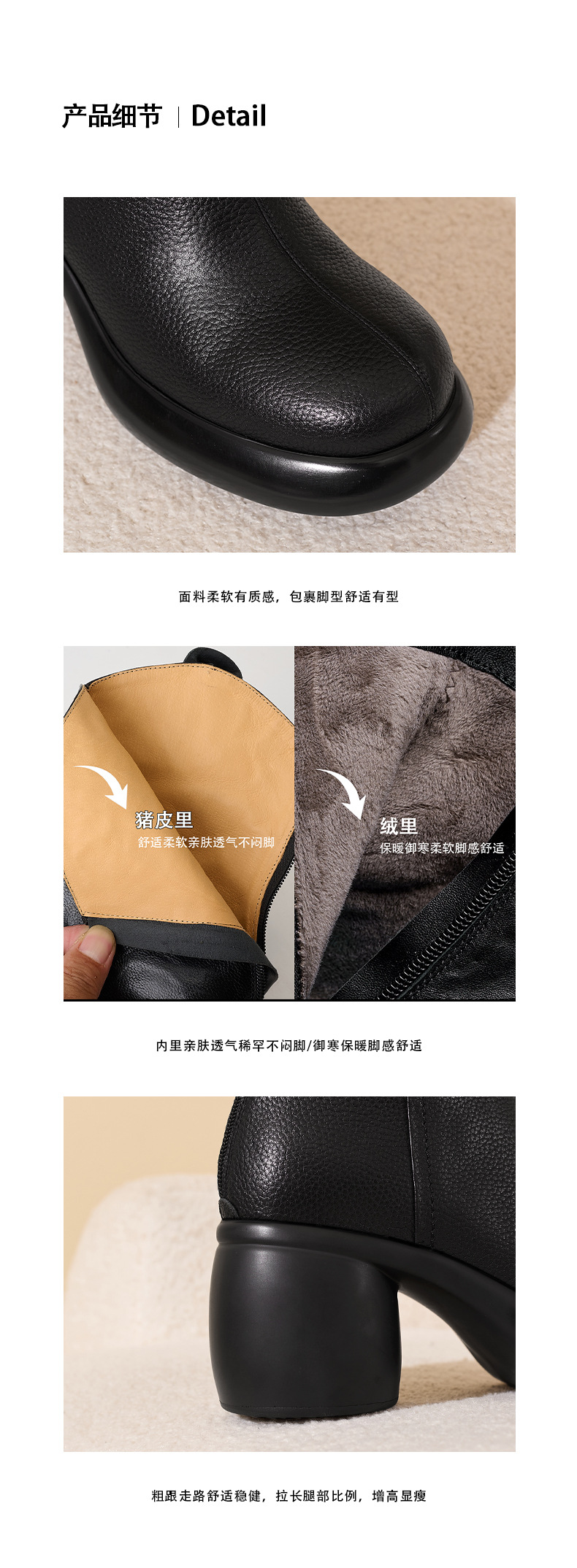 2024 1 층 소 가죽 짧은 부츠 여성 봄과 가을 싱글 부츠 두꺼운 힐 하이힐 두꺼운 바닥 겨울 기모 가죽 마틴 부츠 여성스토어 가기