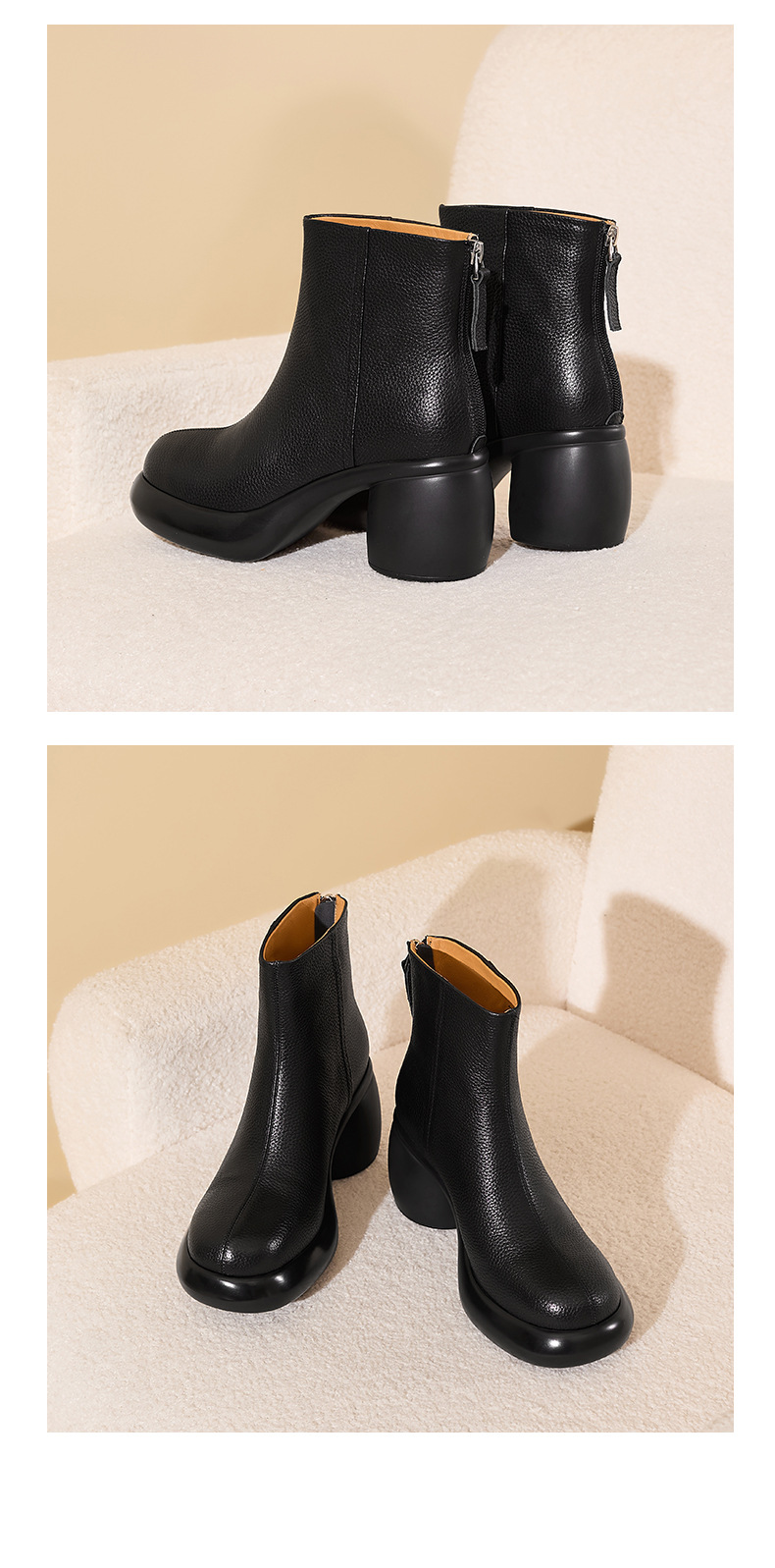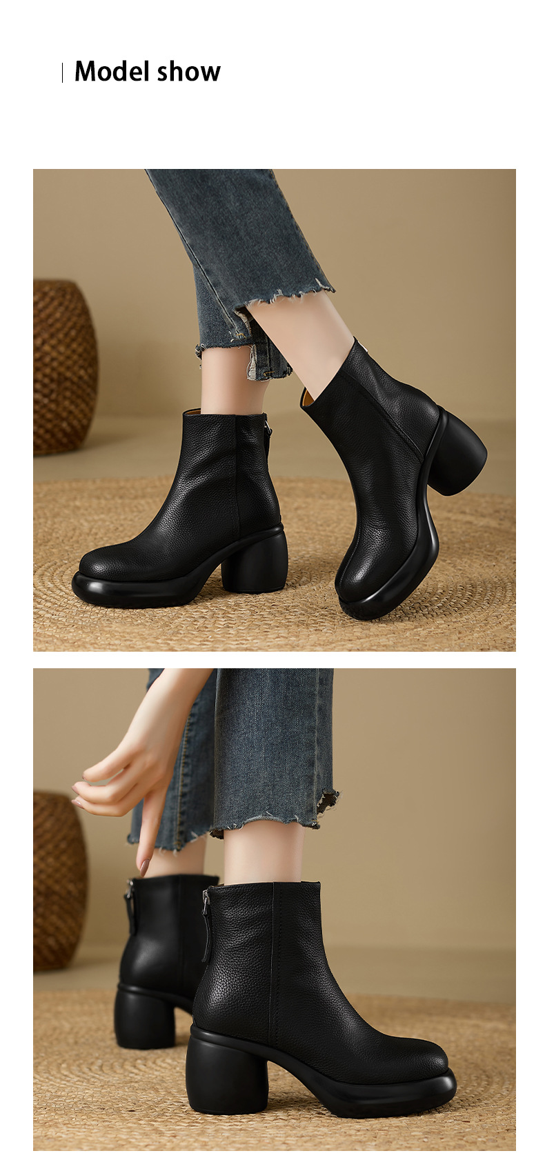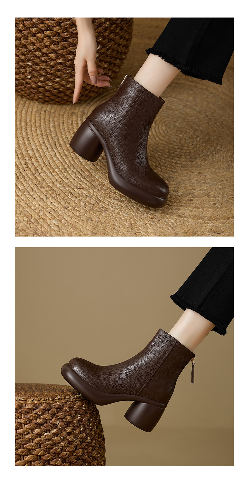 2024 1 층 소 가죽 짧은 부츠 여성 봄과 가을 싱글 부츠 두꺼운 힐 하이힐 두꺼운 바닥 겨울 기모 가죽 마틴 부츠 여성스토어 가기