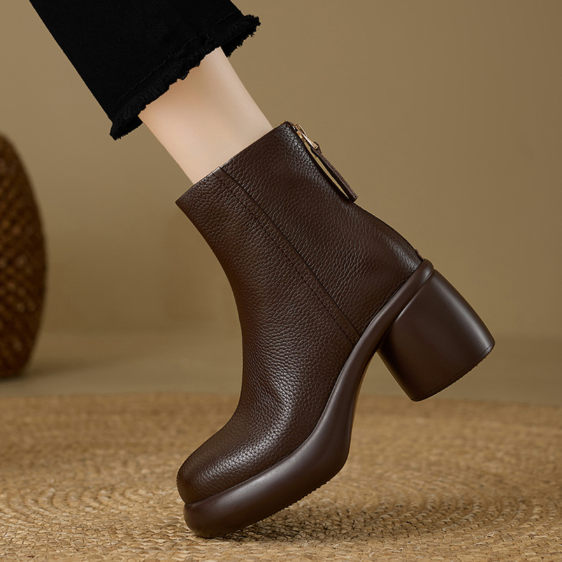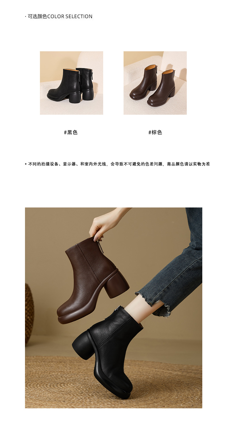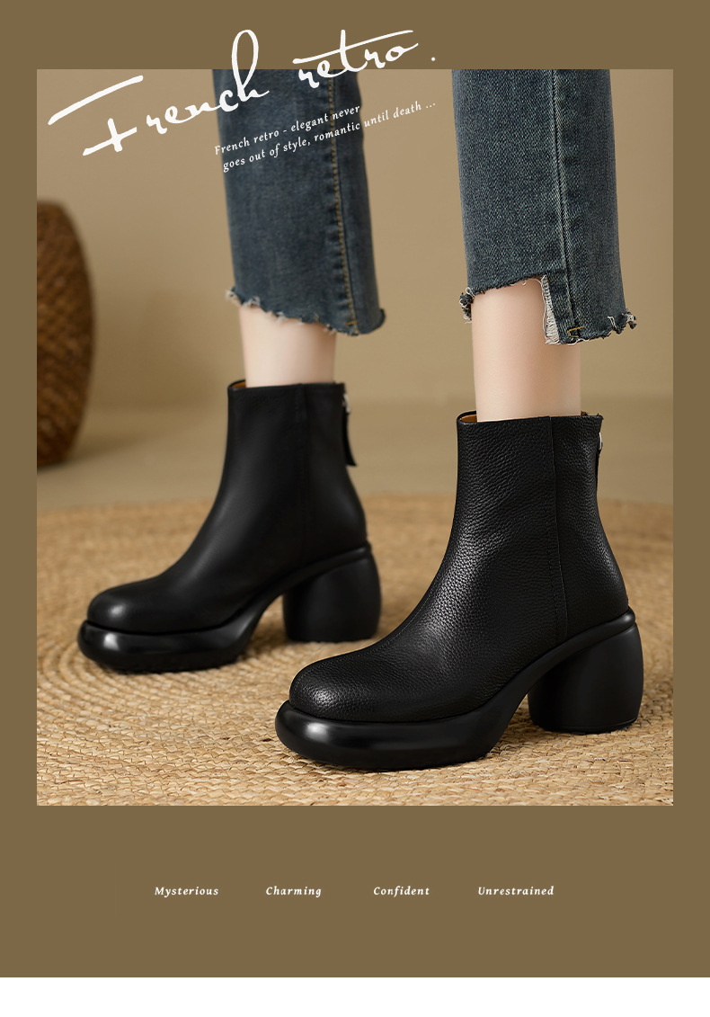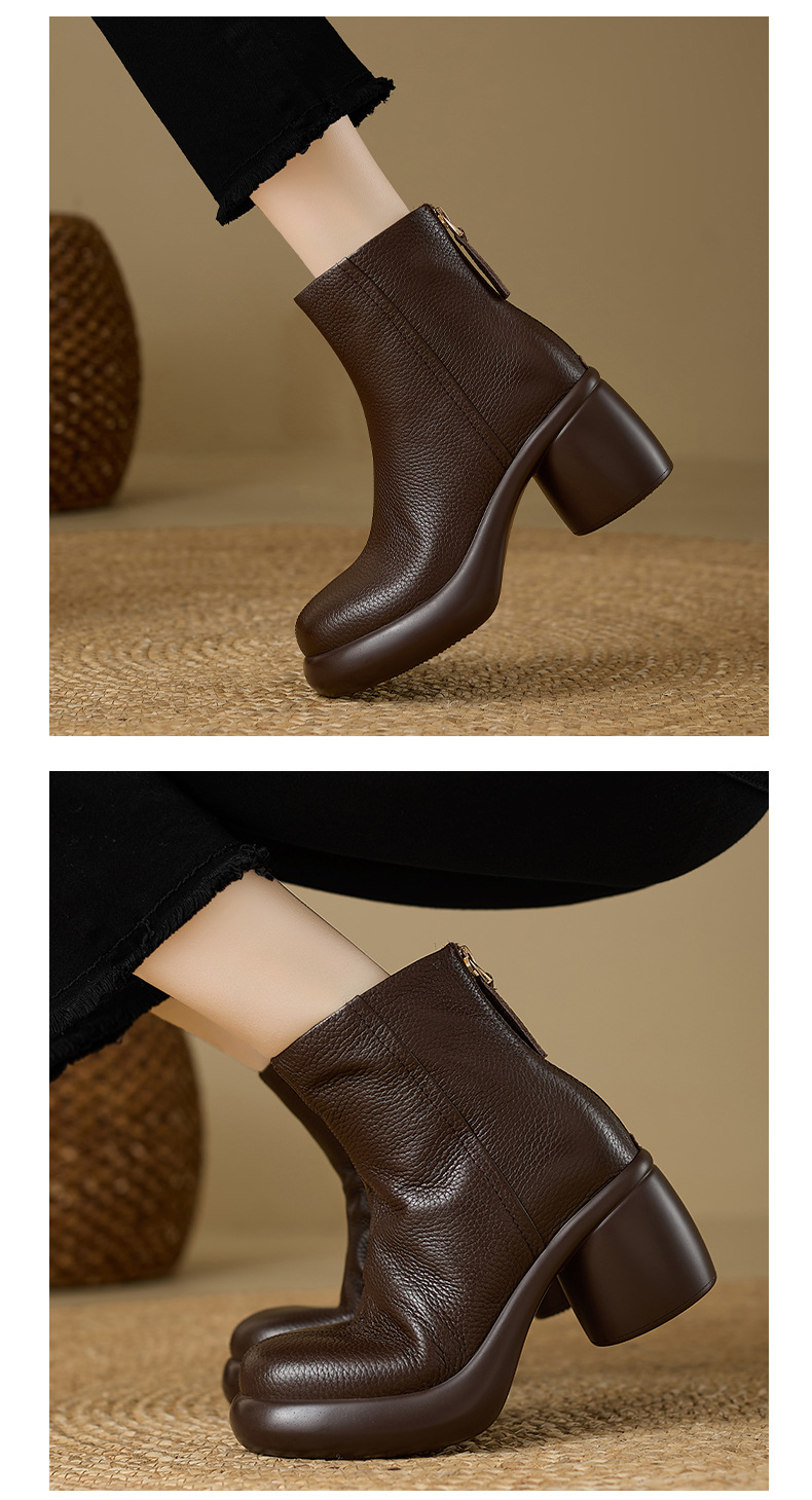 2024 1 층 소 가죽 짧은 부츠 여성 봄과 가을 싱글 부츠 두꺼운 힐 하이힐 두꺼운 바닥 겨울 기모 가죽 마틴 부츠 여성