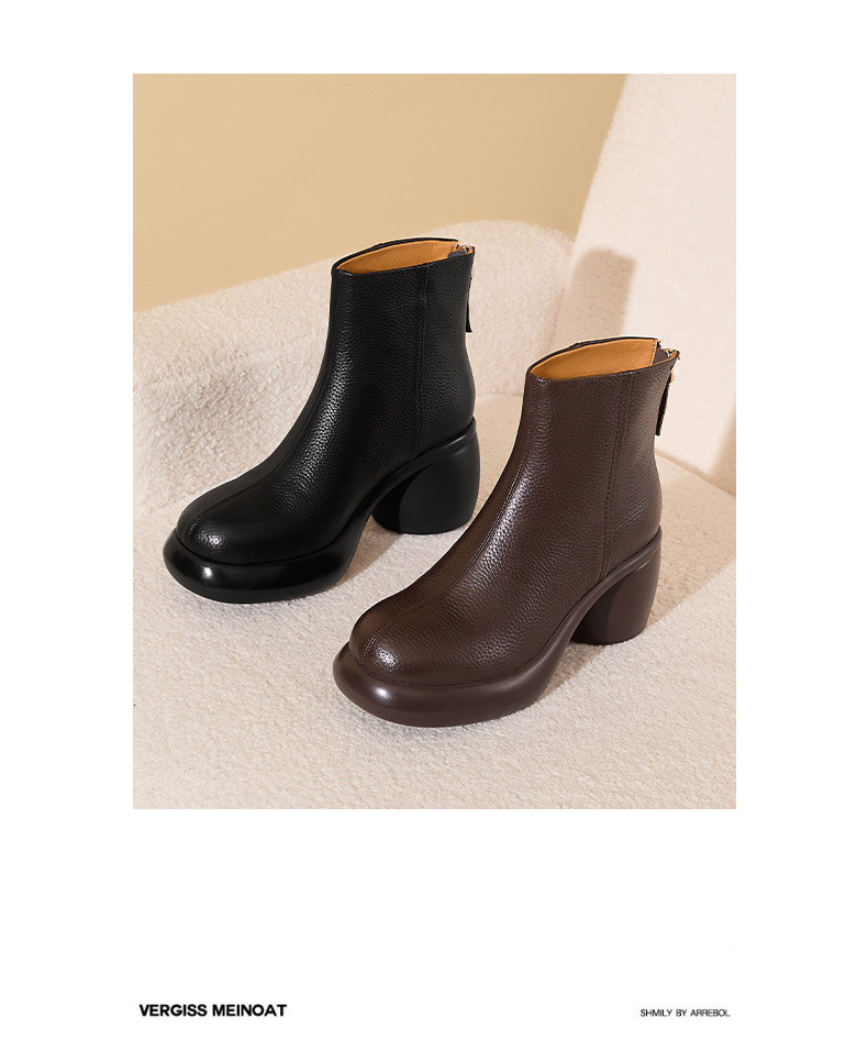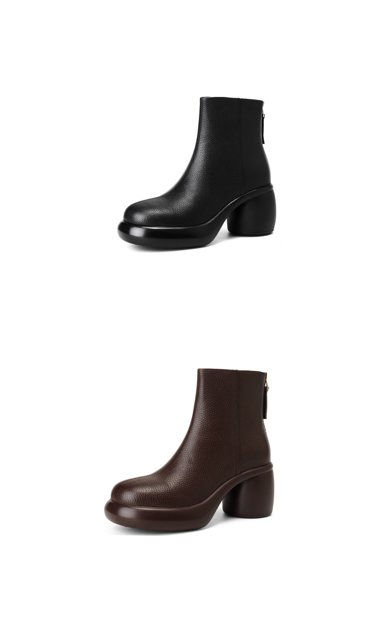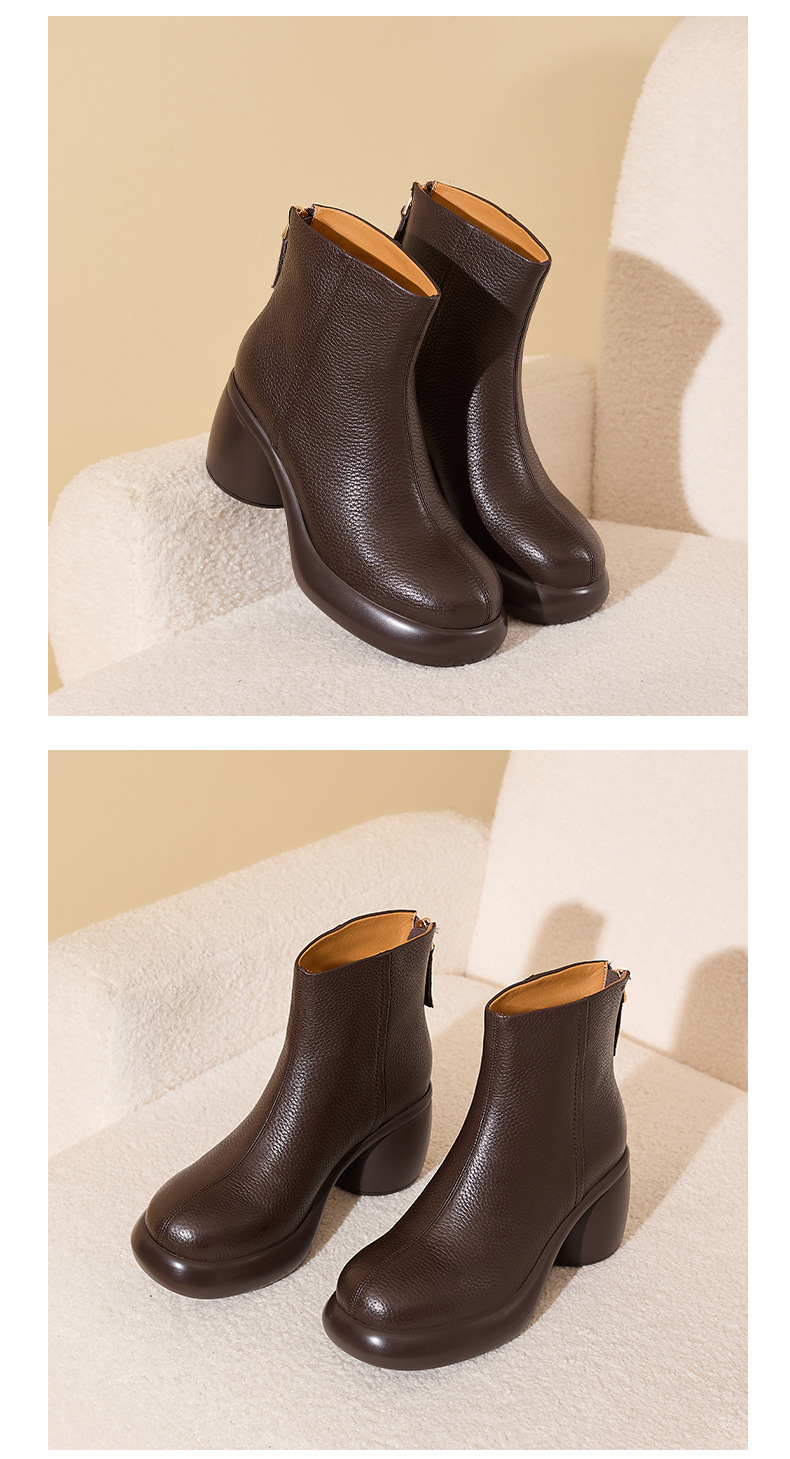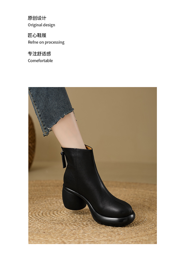 2024 1 층 소 가죽 짧은 부츠 여성 봄과 가을 싱글 부츠 두꺼운 힐 하이힐 두꺼운 바닥 겨울 기모 가죽 마틴 부츠 여성