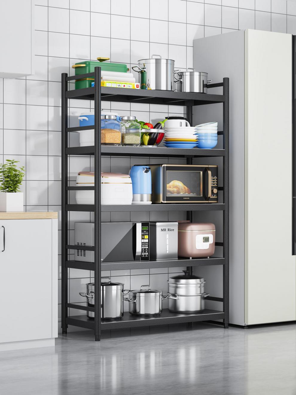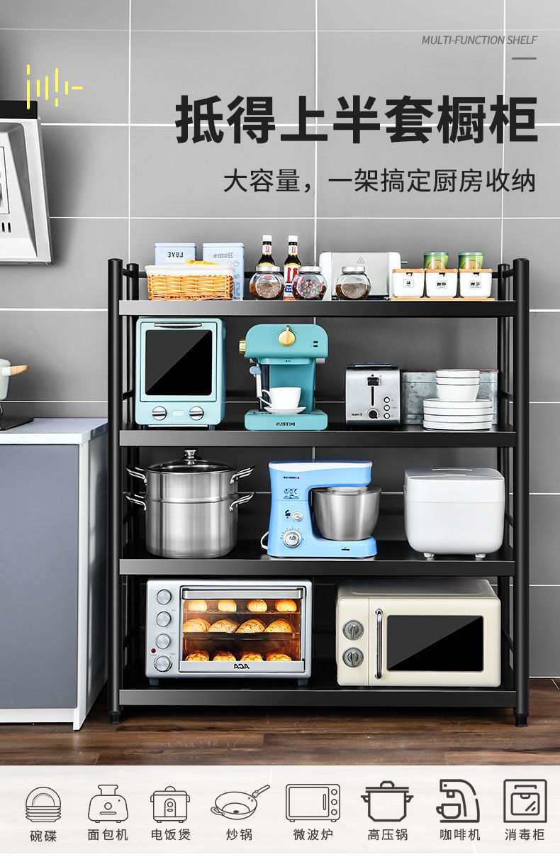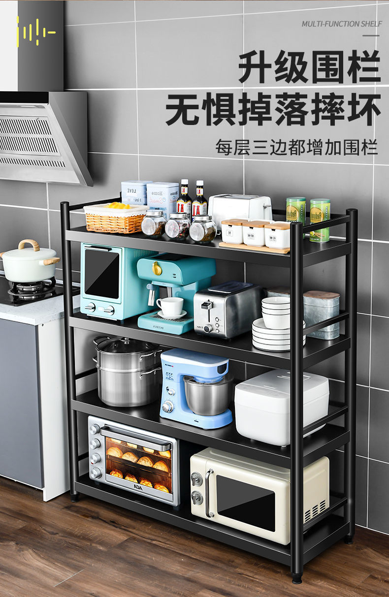 울타리가있는 전자레인지 오븐 저장 랙을위한 주방 보관 랙 바닥 형 다층 다기능 가정용 특수 선반스토어 가기