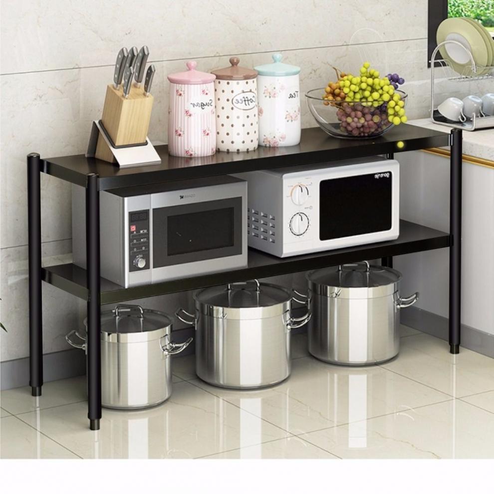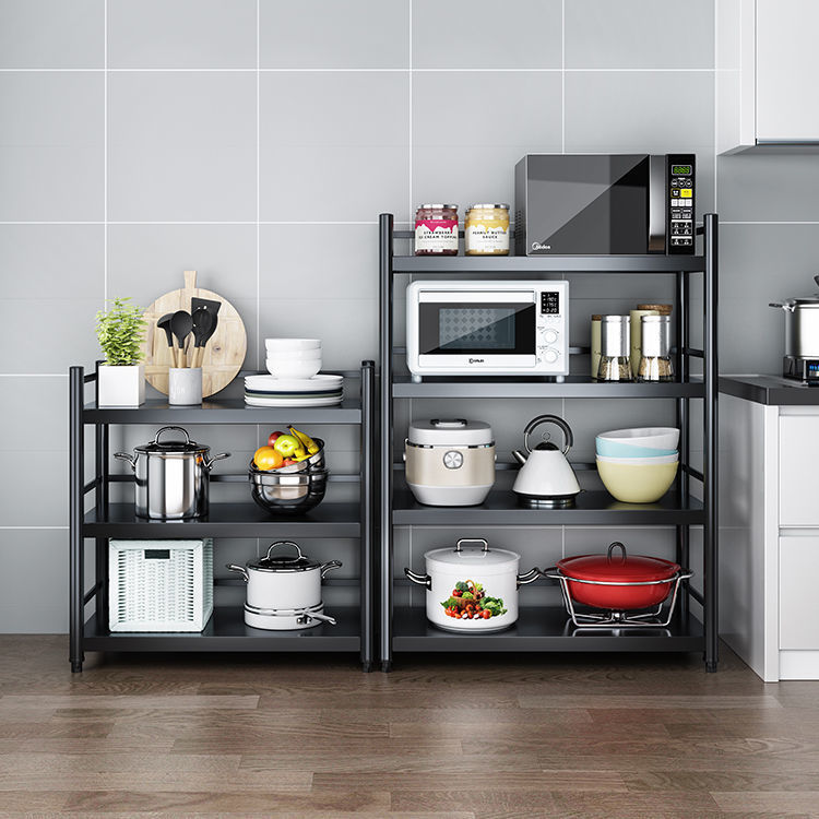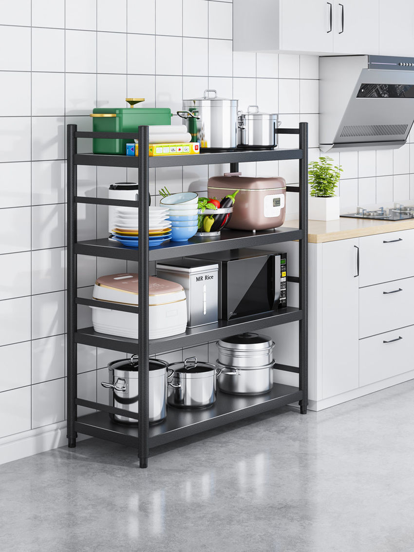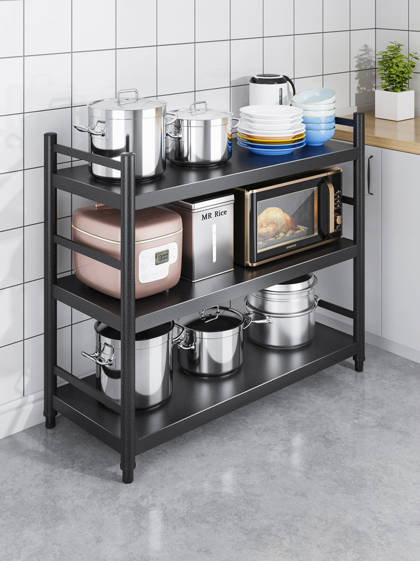 울타리가있는 전자레인지 오븐 저장 랙을위한 주방 보관 랙 바닥 형 다층 다기능 가정용 특수 선반스토어 가기