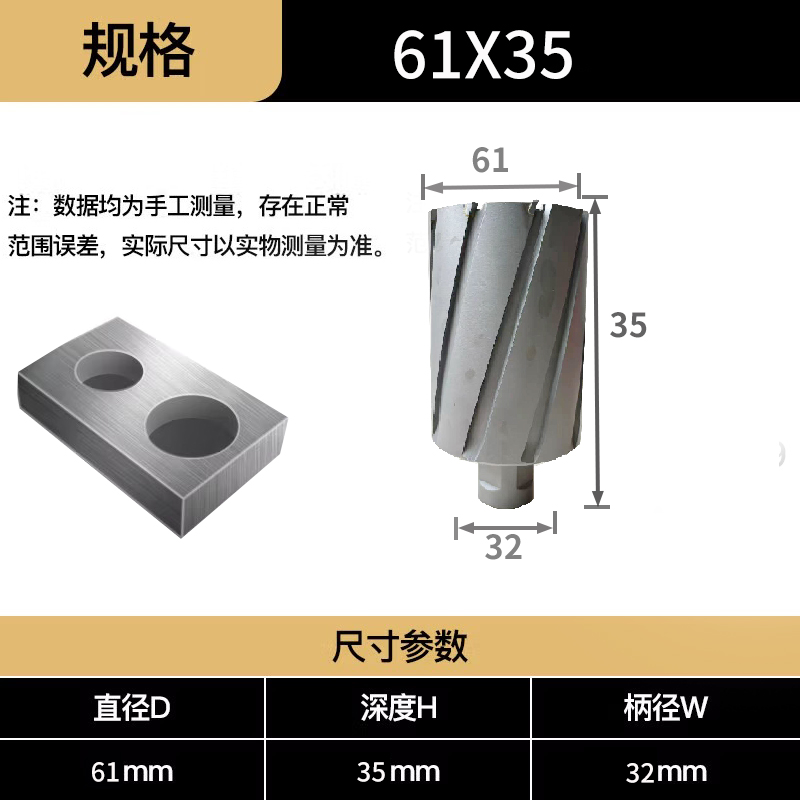 空心钻头(T.C.T.annular cutter)又名取芯钻头、空心钻、空芯钻头、取心钻头、金属开孔器、开孔器、扩孔钻头、在切削过程中,只负担1/3左右的工作量,加上每个刀刃的内扩孔钻头、磁座钻钻头、磁力钻钻头、磁性钻钻头等,空心钻头的工作原理:刀头采用两组或多组3刃组合,3枚组合刃由若干个外刃、中刃、内刃组成。每个刀刃侧也均有切削刀。所以,可以使排屑非常顺畅。另外由于各刃分别负担一部分切削工作的特性,使得该孔钻极不容易产生崩刃现象,空心钻头(T.C.T.annular cutter)钻头分类:6-130mm高速钢钻头,12-160mm硬质合金钻头T.C.T,12-160mm钨钢钻头;有效的削切深度:25mm、 35mm、50mm、75mm、100mm、120mm、150mm、180mm、300mm;钻孔直径规格: 12至160;空心钻头主要材质有高速钢类;粉末冶金类;硬质合金类。按柄型可分为:直角柄空心钻头,削平柄空心钻头,通用柄空心钻头,四孔柄空心钻头,P型直角柄空心钻头,螺纹柄空心钻头等,适合电动机:磁力钻/磁座钻/钻床/车床/铣床,种类、规格齐全,适用于各种品牌的进口磁座钻磁力钻,如比蒂斯等,泛音柄(四孔柄空心钻头)FEIN德国泛音,日东柄适合日东钻机等进口品牌,直柄(削平柄、两个平面柄)适合各种国产磁力钻,及通用钻床、立式台钻、铣床、镗床、机床等。