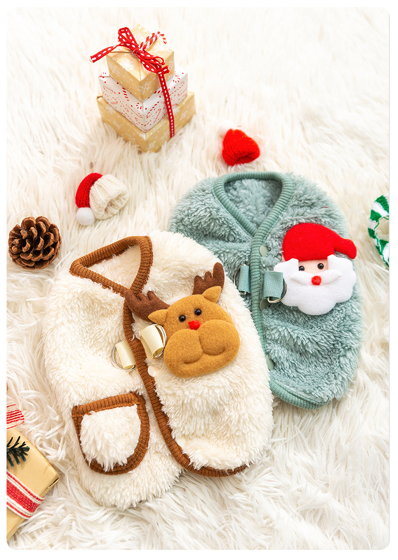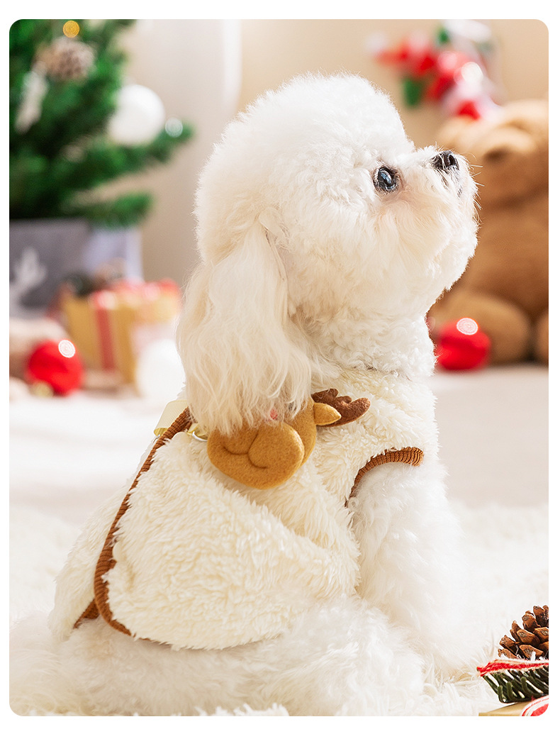 가을과 겨울 개 옷 크리스마스 엘크 민소매 견인 양털 테디 비콘 작은 개 고양이 애완 동물 옷스토어 가기