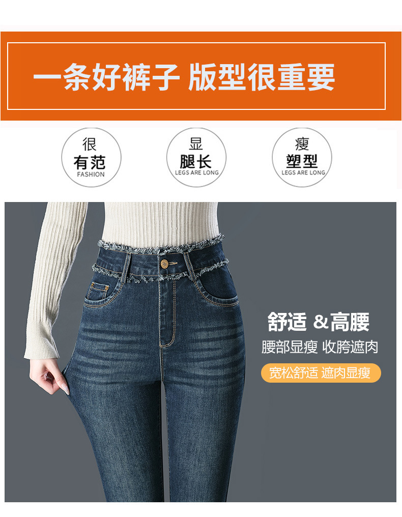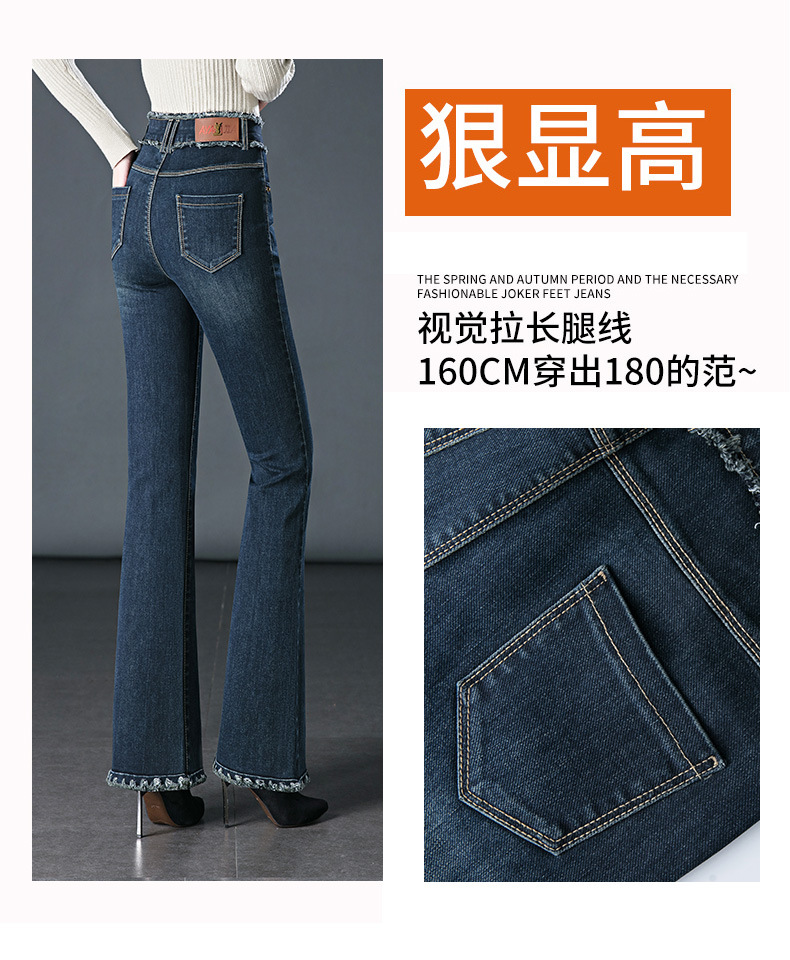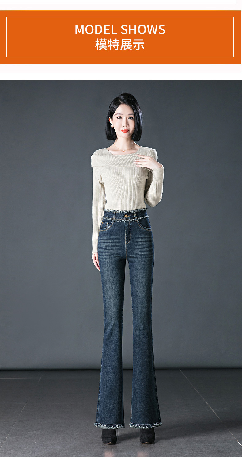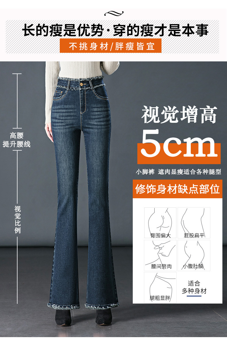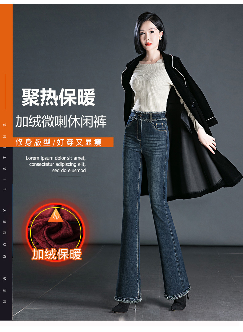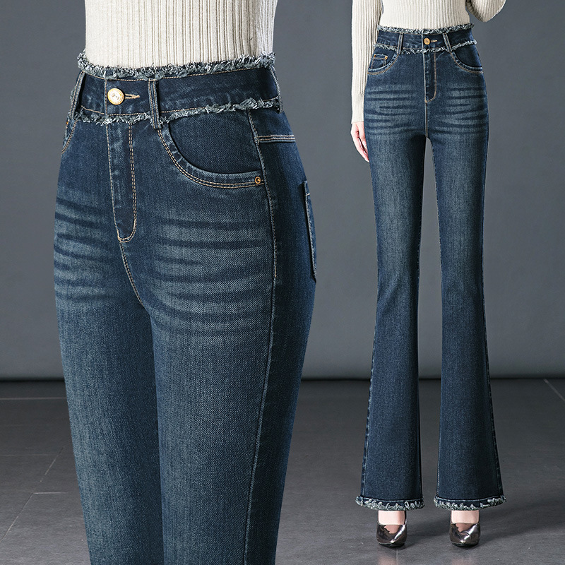 뿔 청바지 여성의 높은 허리 슬리밍 플러스 사이즈 가을과 겨울 기모 두꺼운 아메리칸 스타일 복고풍 넓은 다리 바지 5X스토어 가기