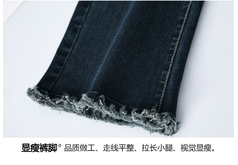뿔 청바지 여성의 높은 허리 슬리밍 플러스 사이즈 가을과 겨울 기모 두꺼운 아메리칸 스타일 복고풍 넓은 다리 바지 5X