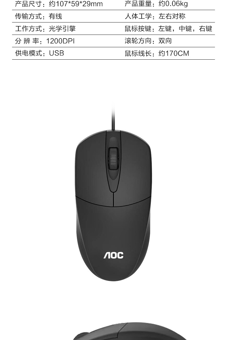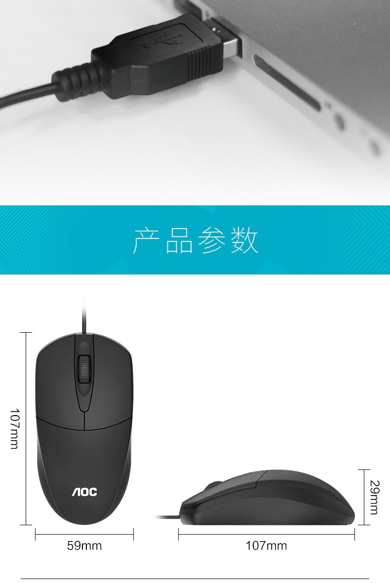 AOC MS121 유선 USB 마우스 홈 오피스 비즈니스 노트북 데스크톱 컴퓨터 마우스 도매스토어 가기