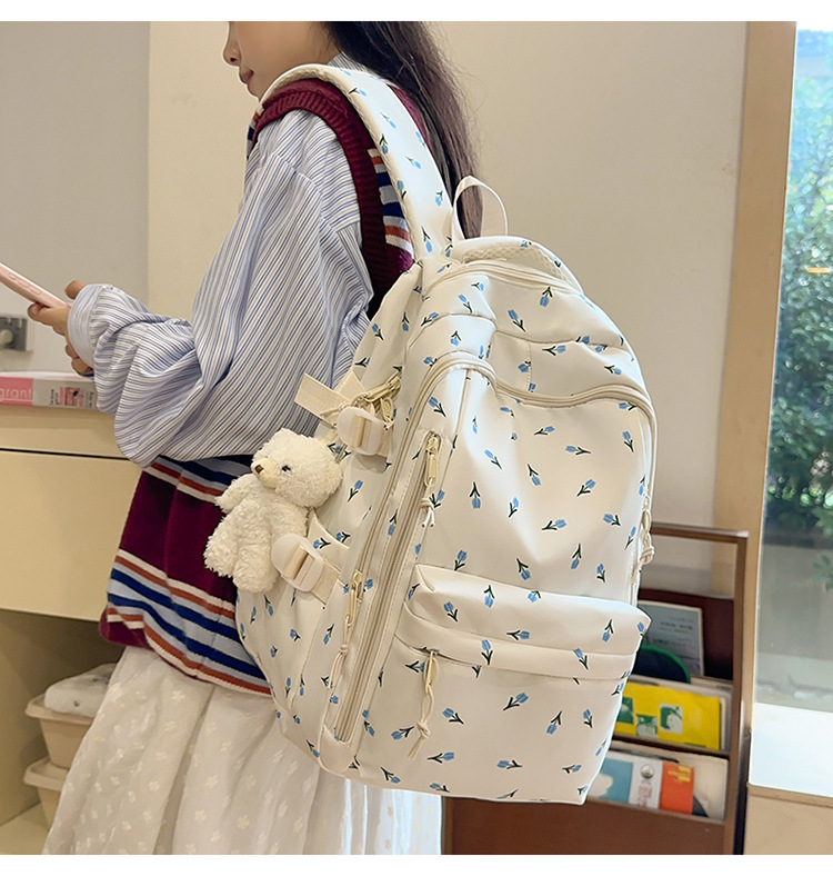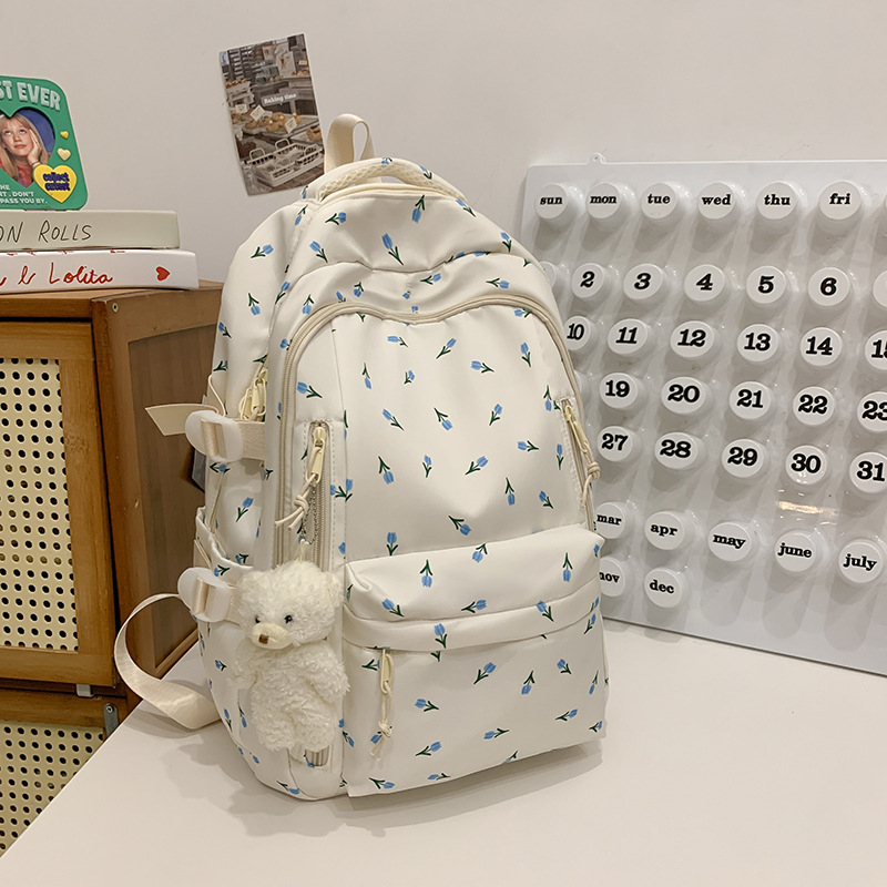 대학 스타일 스쿨백 여대생 한국식 작은 꽃 배낭 올매치 대용량 유행 배낭 중학교 및 고등학생스토어 가기