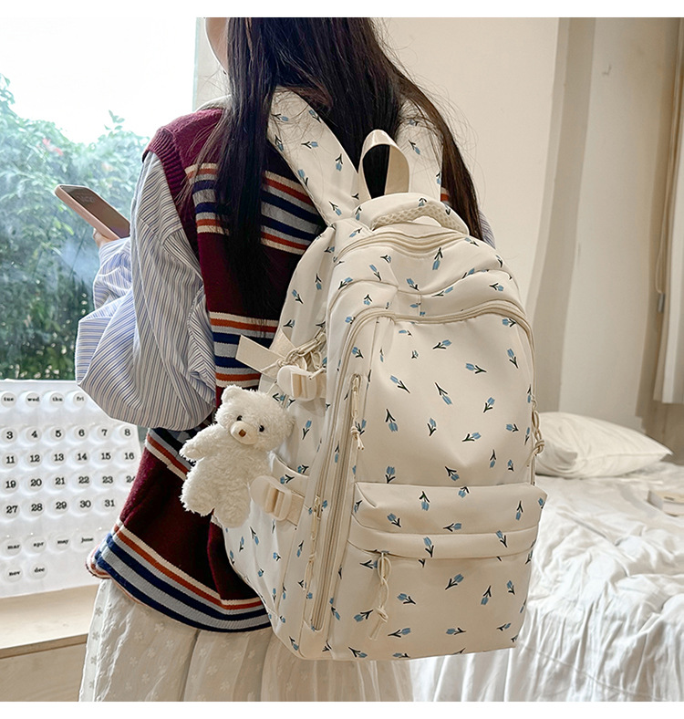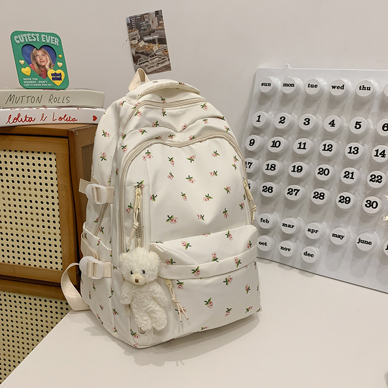대학 스타일 스쿨백 여대생 한국식 작은 꽃 배낭 올매치 대용량 유행 배낭 중학교 및 고등학생