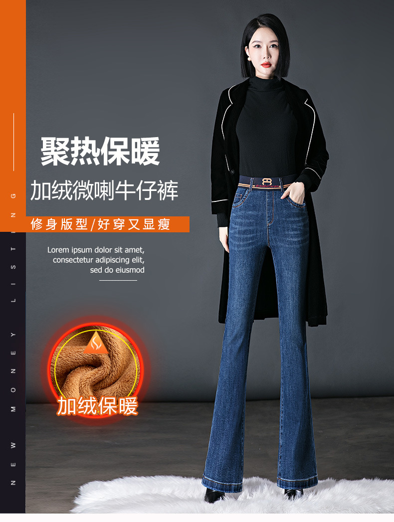 마이크로 라 청바지 여성의 가을과 겨울 기모 두꺼운 패션 어머니 바지 폭발 높은 허리 슬리밍 캐주얼 바지 5X스토어 가기