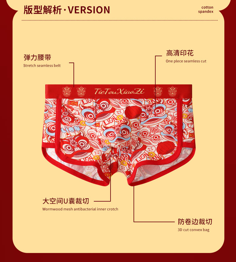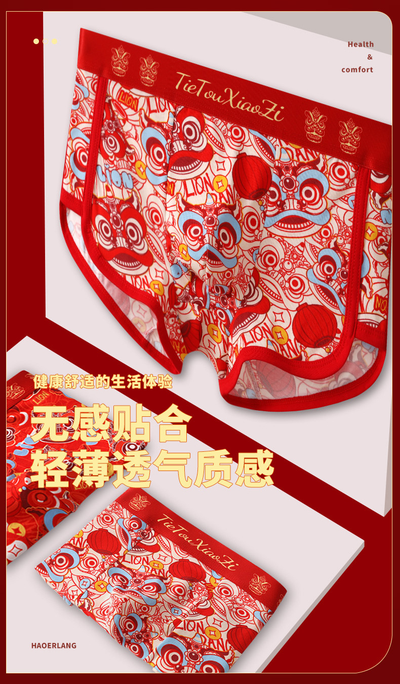새로운 Benmingnian Red Men's Underwear Mid-Waist Boys 'Boxer Pants 편안한 패션 축제 인쇄 남성 바지