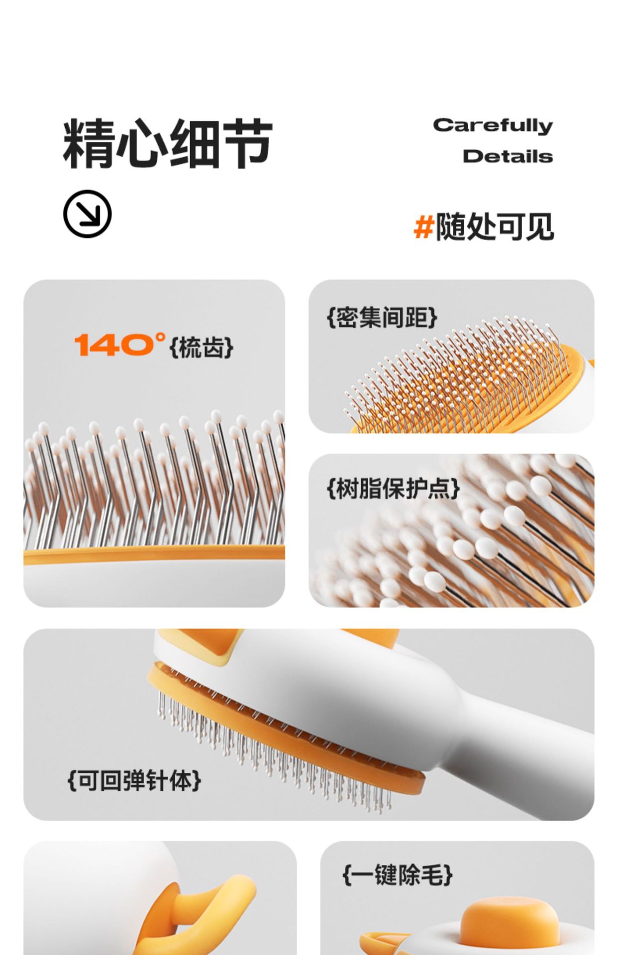 • ★[클래식 햄버거 빗] (노란색) 제모 마사지, 투인원
