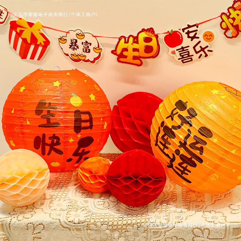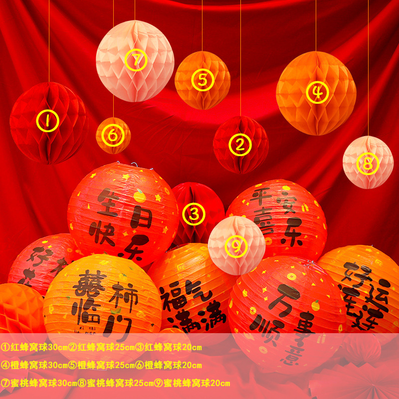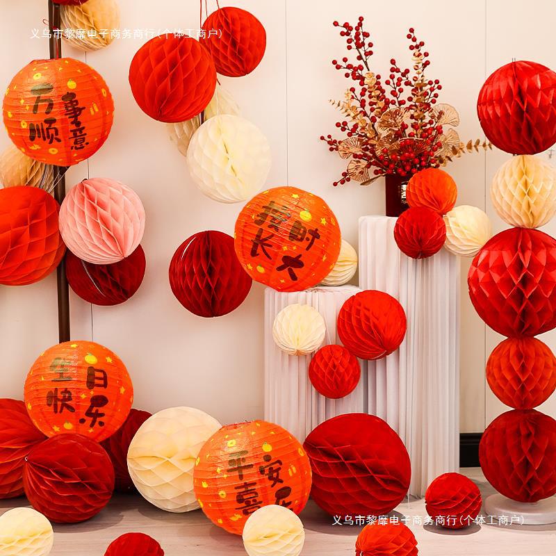 새로운 중국 스타일의 생일 준비 벌집 공 빨간 종이 랜턴 장식 잡아 저우 연회 배경 장식품 사진 소품스토어 가기