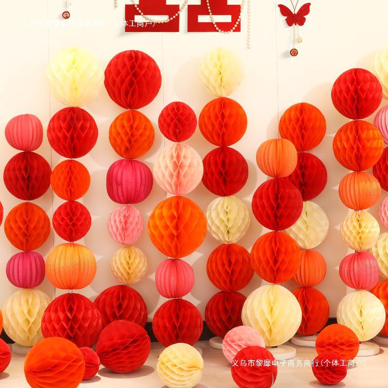 새로운 중국 스타일의 생일 준비 벌집 공 빨간 종이 랜턴 장식 잡아 저우 연회 배경 장식품 사진 소품