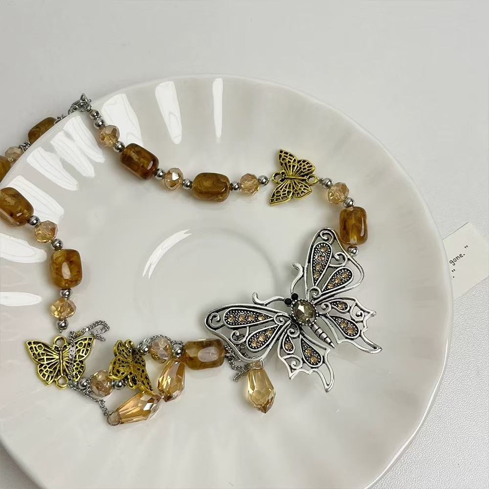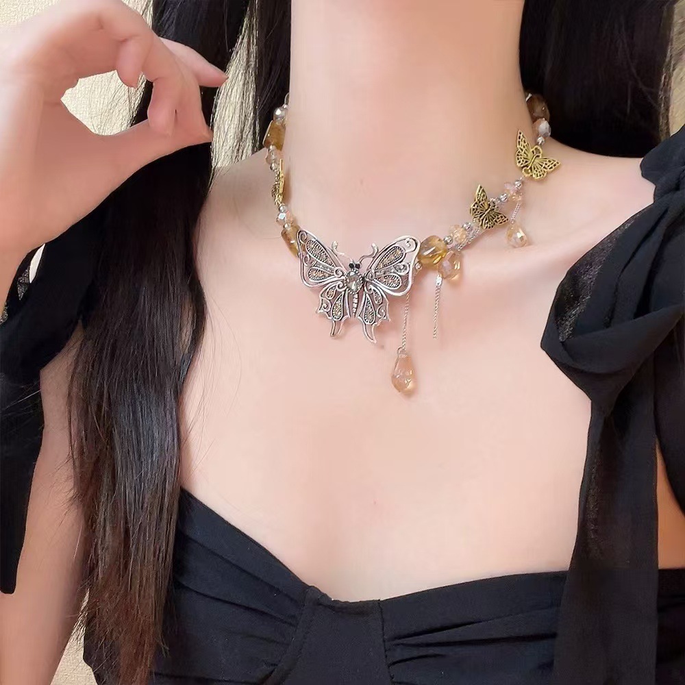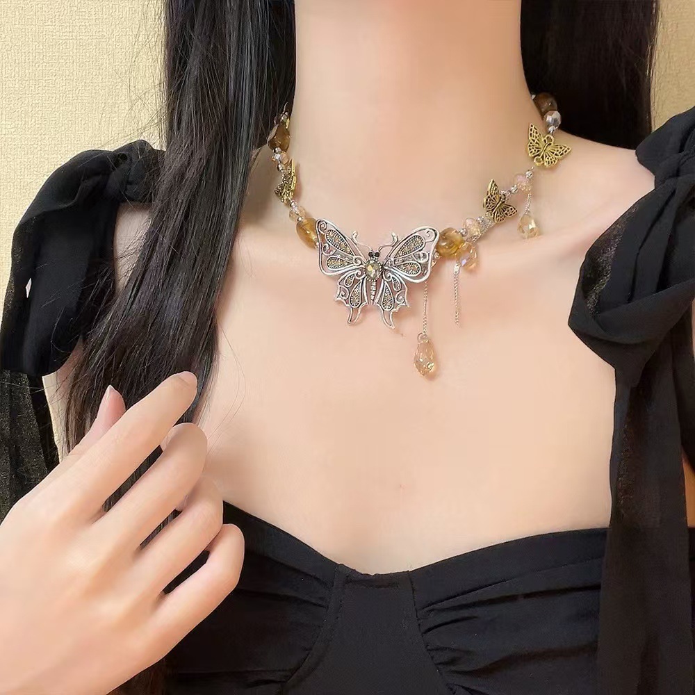 새로운 중국 스타일 복고풍 나비 구슬 목걸이 여성용 라이트 럭셔리 틈새 디자인 술 쇄골 체인 메라드 목걸이 액세서리스토어 가기