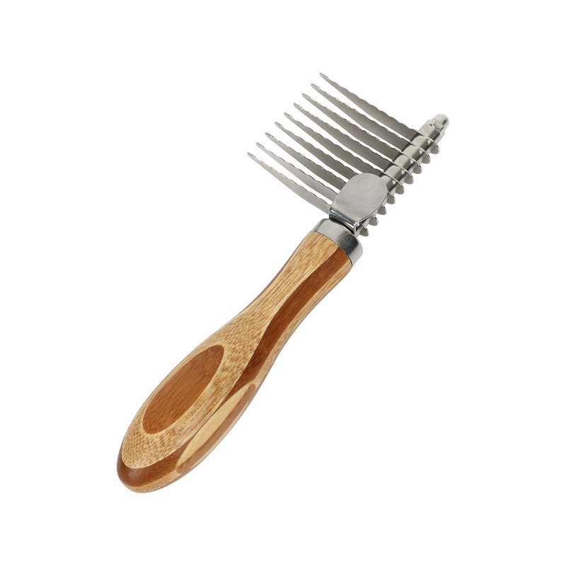 애완 동물 빗 다채로운 대나무 솔리드 우드 오픈 매듭 빗 양면 스테인레스 스틸 개와 고양이가 헤어 플레이킹 빗 레이크 빗