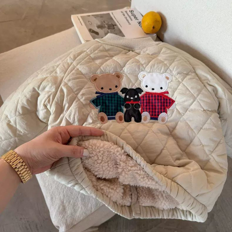 기모 두껍게 ~ 어린이 면화 패딩 옷 2024 가을과 겨울 어린이 만화 면화 패딩 옷 아기 자수 면화 재킷