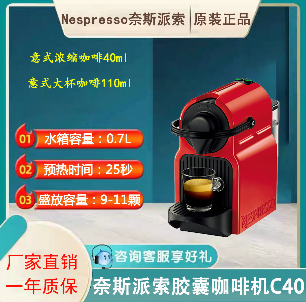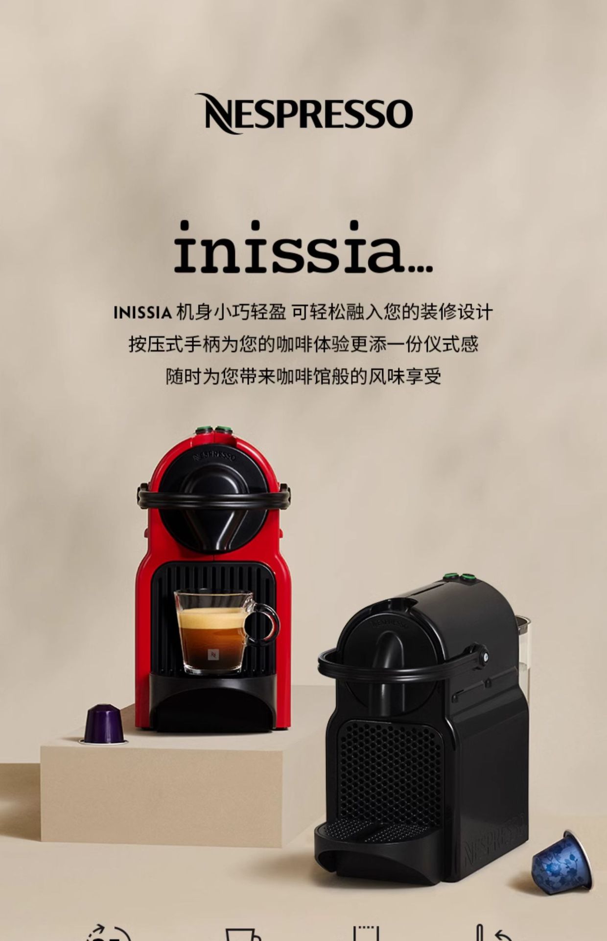 네슬레 캡슐 커피 머신 C40 Inissia 자동 이탈리아 가정용 미니 선물 캡슐 커피 머신스토어 가기