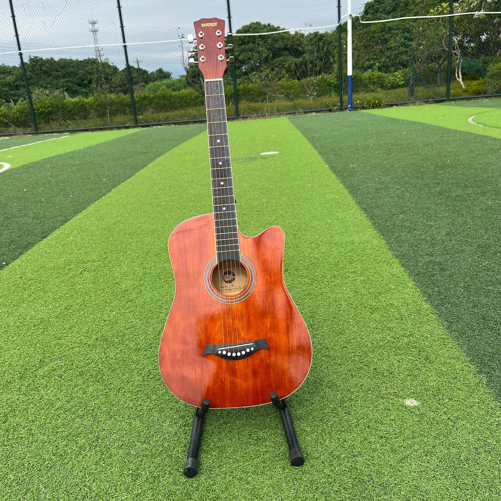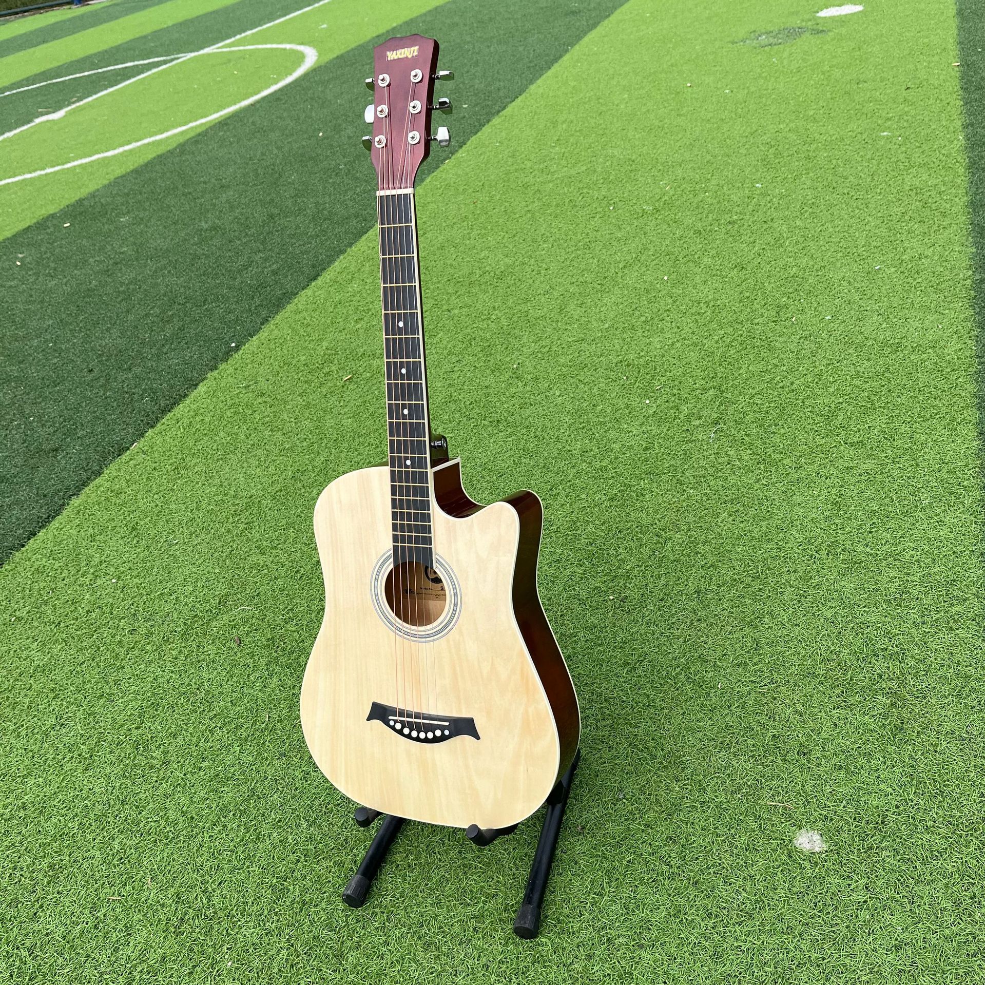 세련된 포크 기타 Muji Lin 41 인치 셀룰로이드 가장자리 가벼운 민속 악기는 머리카락 세대를 교차합니다.