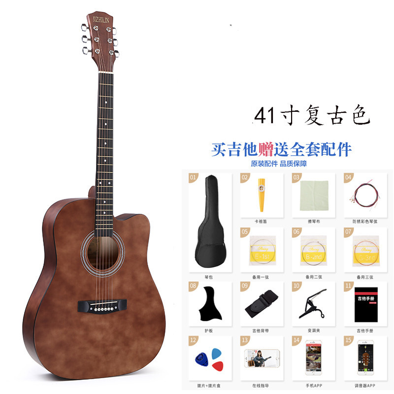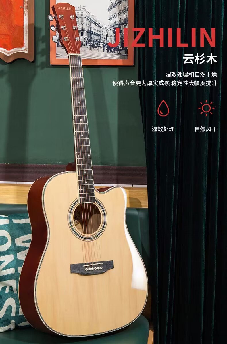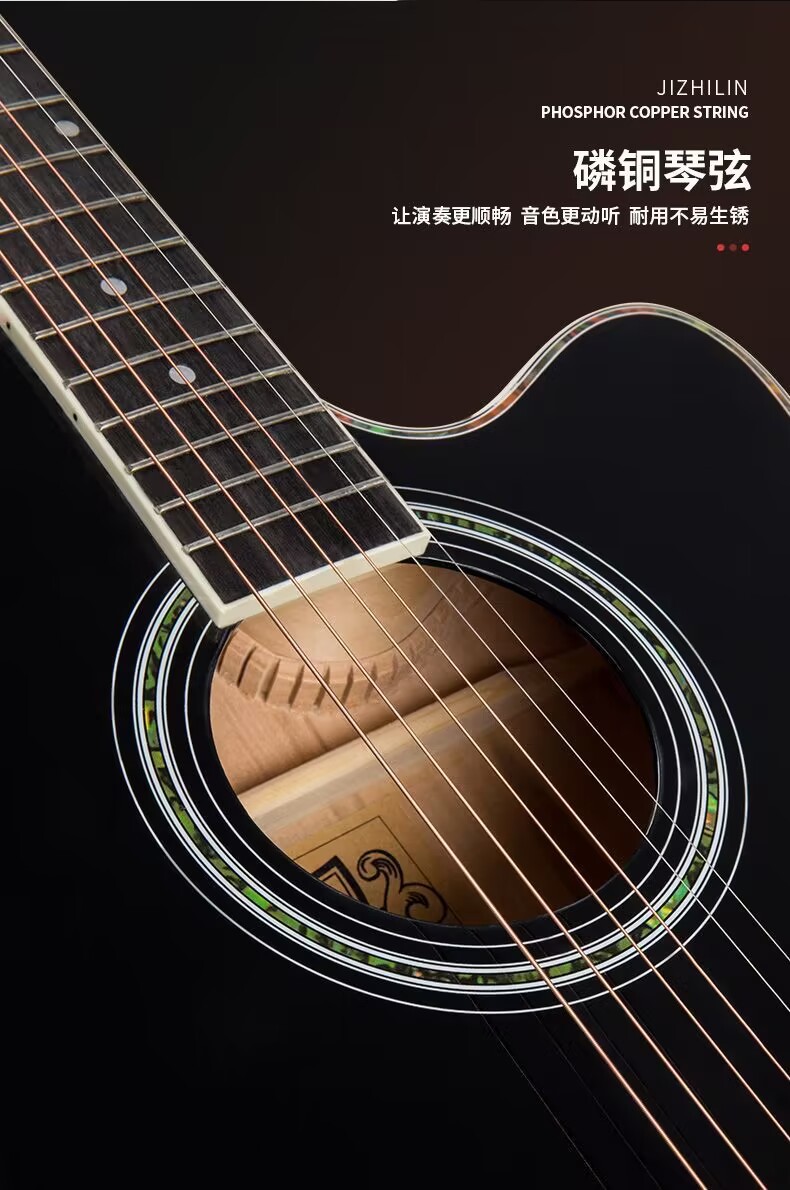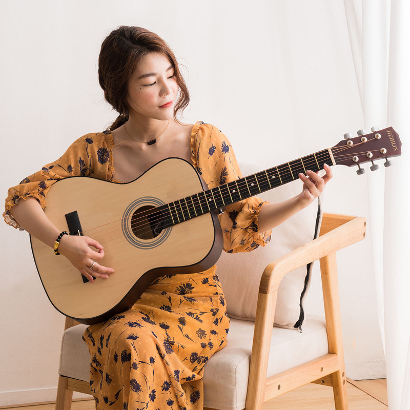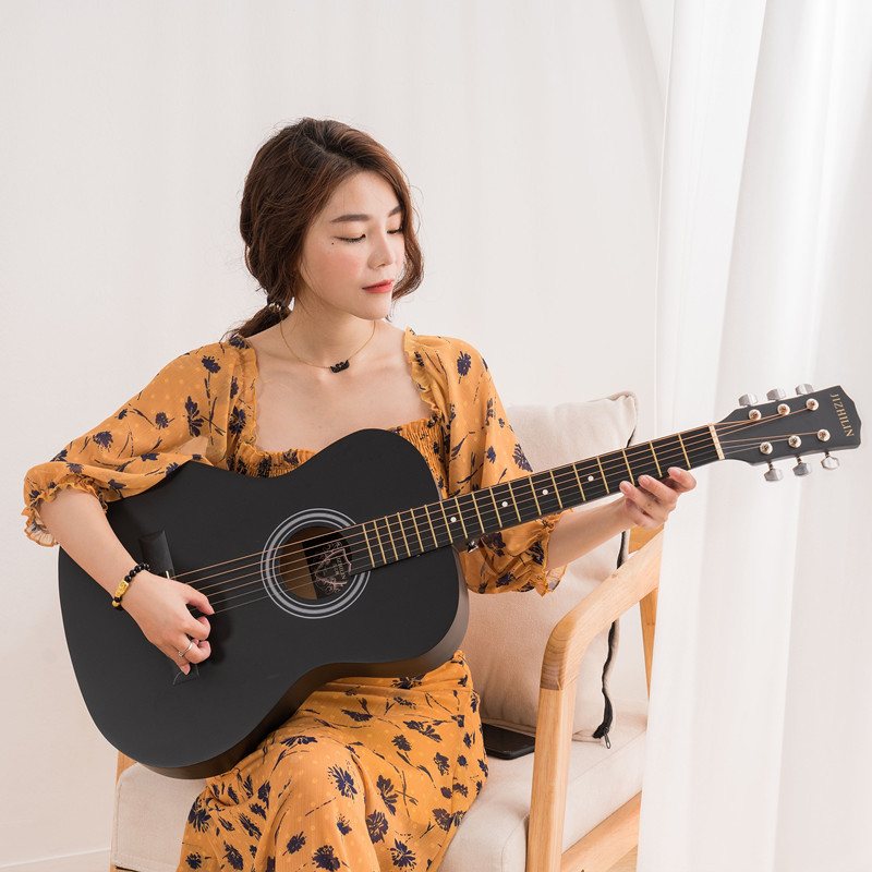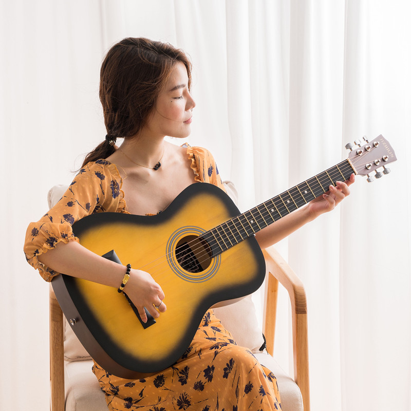 세련된 포크 기타 Muji Lin 41 인치 셀룰로이드 가장자리 가벼운 민속 악기는 머리카락 세대를 교차합니다.스토어 가기