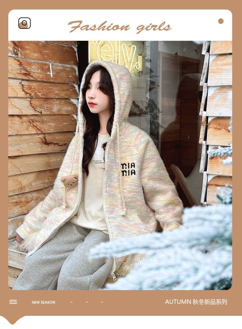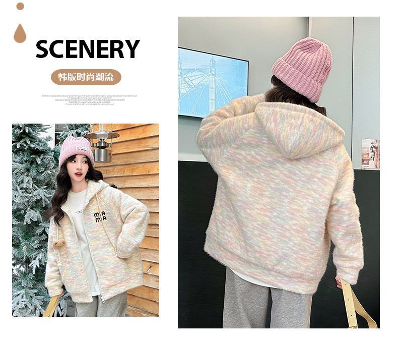 소녀 한국 스타일 달콤한 후드 니트웨어 큰 키즈 후드 자켓 가을과 겨울 새로운 유행 편안한 지퍼 셔츠 트렌디스토어 가기