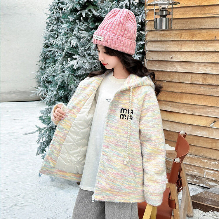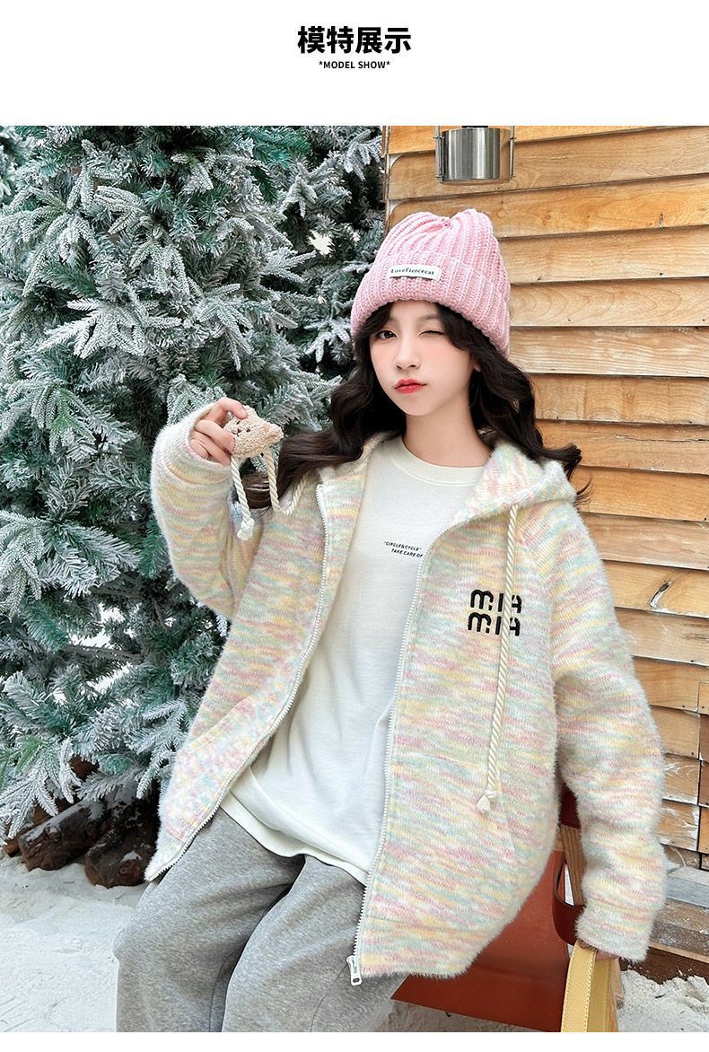 소녀 한국 스타일 달콤한 후드 니트웨어 큰 키즈 후드 자켓 가을과 겨울 새로운 유행 편안한 지퍼 셔츠 트렌디