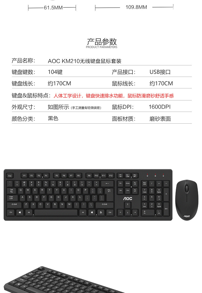 AOC KM210 무선 마우스 세트 무선 마우스 키보드 세트 USB 홈 컴퓨터 액세서리 도매스토어 가기