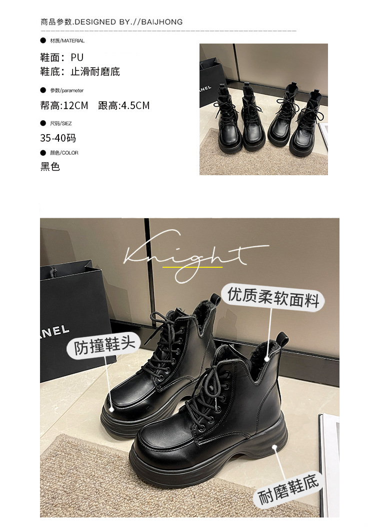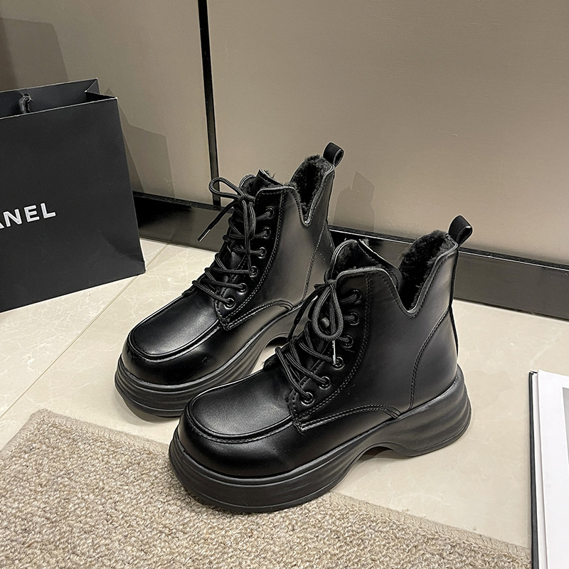 폭발 두꺼운 밑창 영국 스타일 레이스 업 마틴 부츠 패션 편안한 짧은 부츠 여성의 가을과 겨울 2024 새로운 기모 가죽 부츠스토어 가기