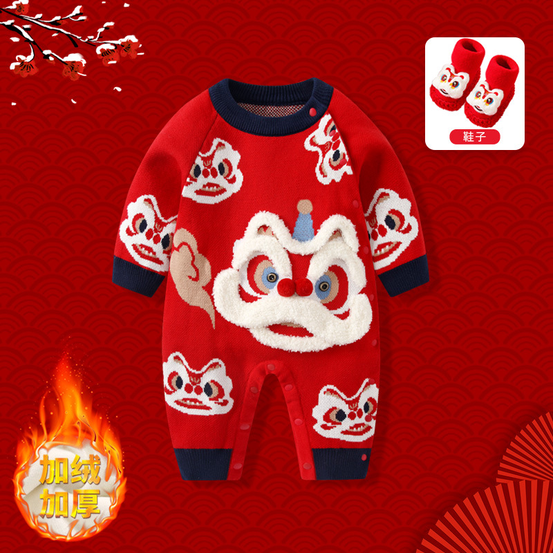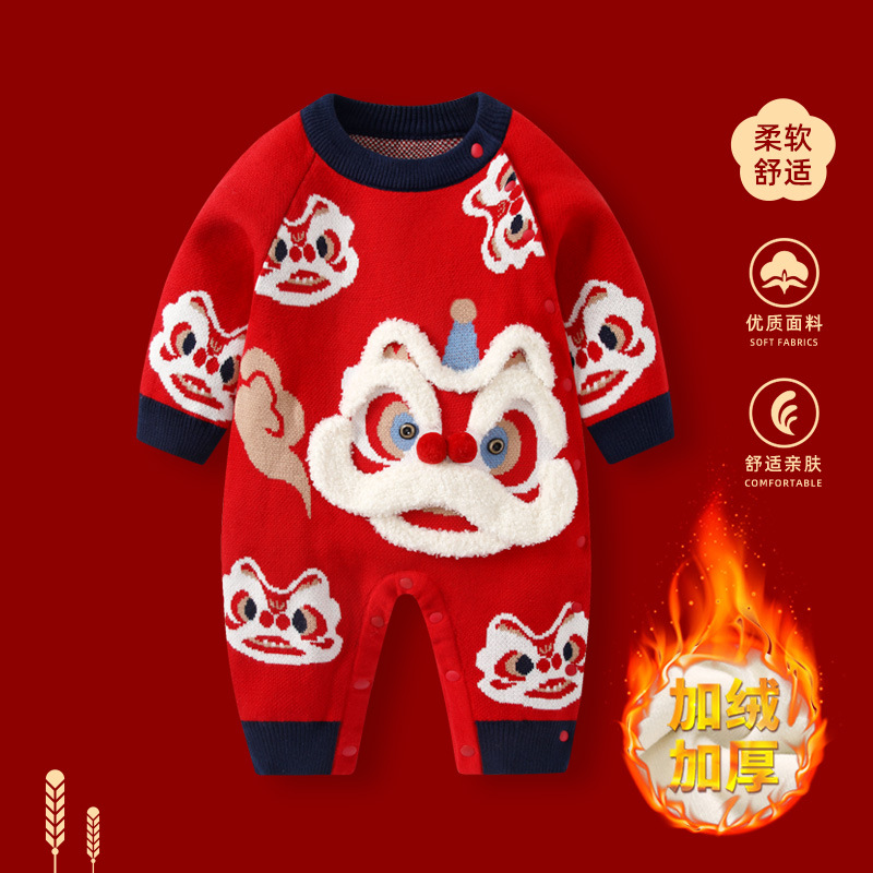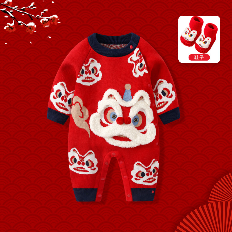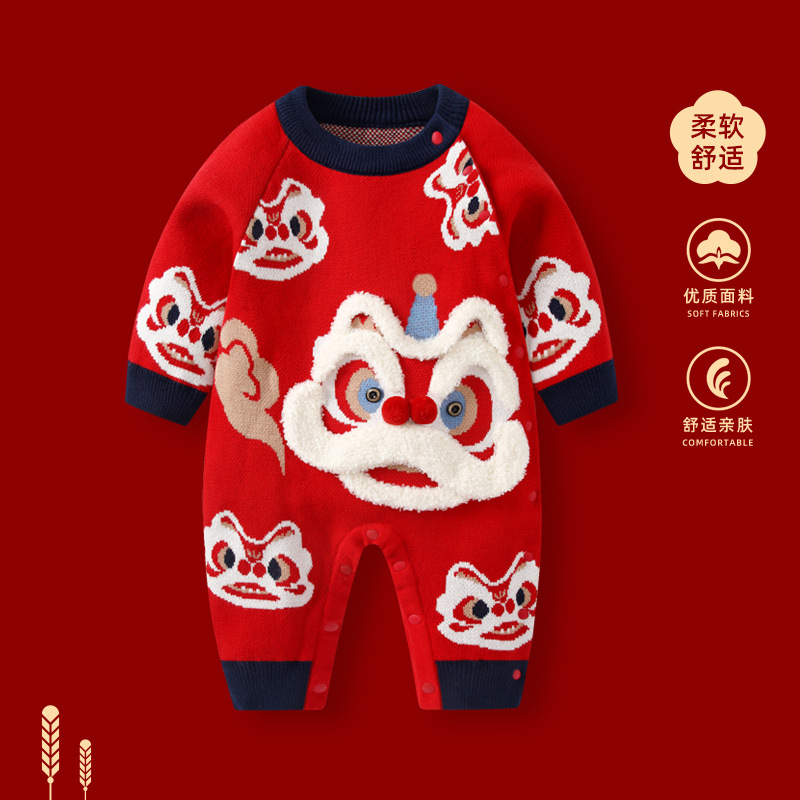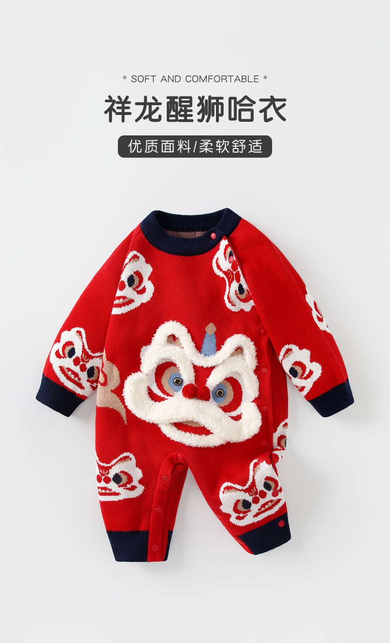 아기 새해 인사말 옷 새해 축하 옷 드래곤 아기의 해 오래된 원피스 빨간 원피스 옷 남자 보물 새해 겨울 옷