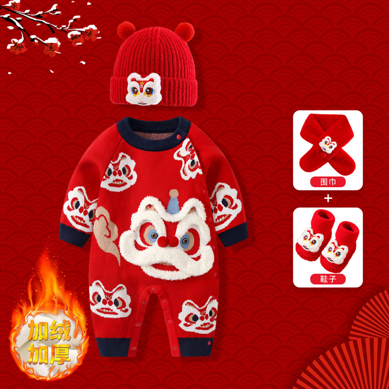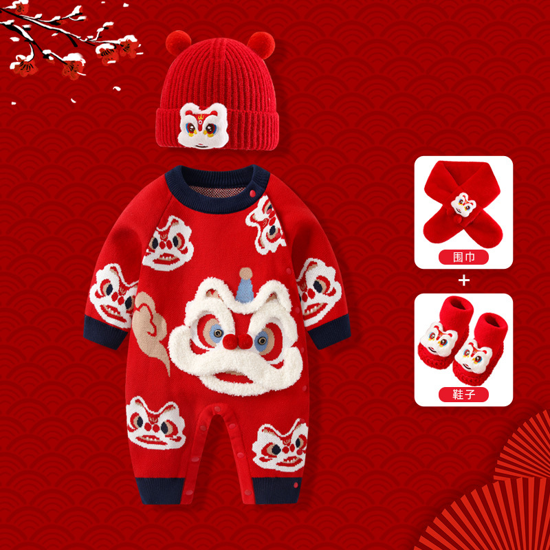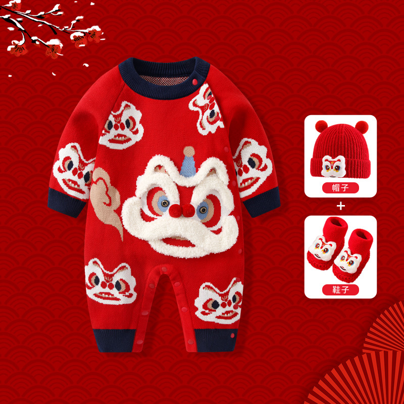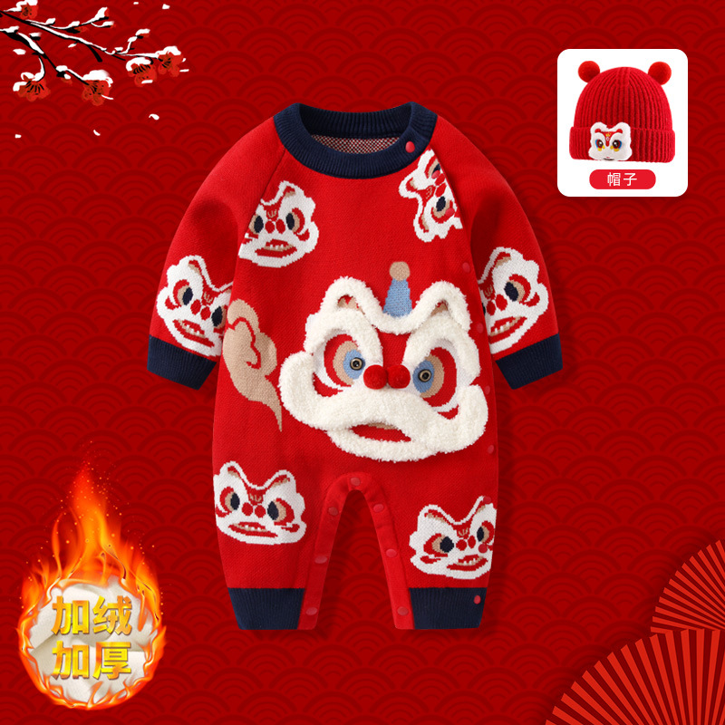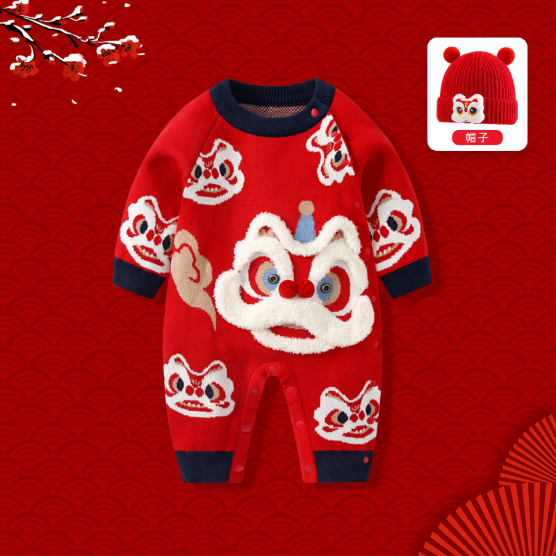 아기 새해 인사말 옷 새해 축하 옷 드래곤 아기의 해 오래된 원피스 빨간 원피스 옷 남자 보물 새해 겨울 옷