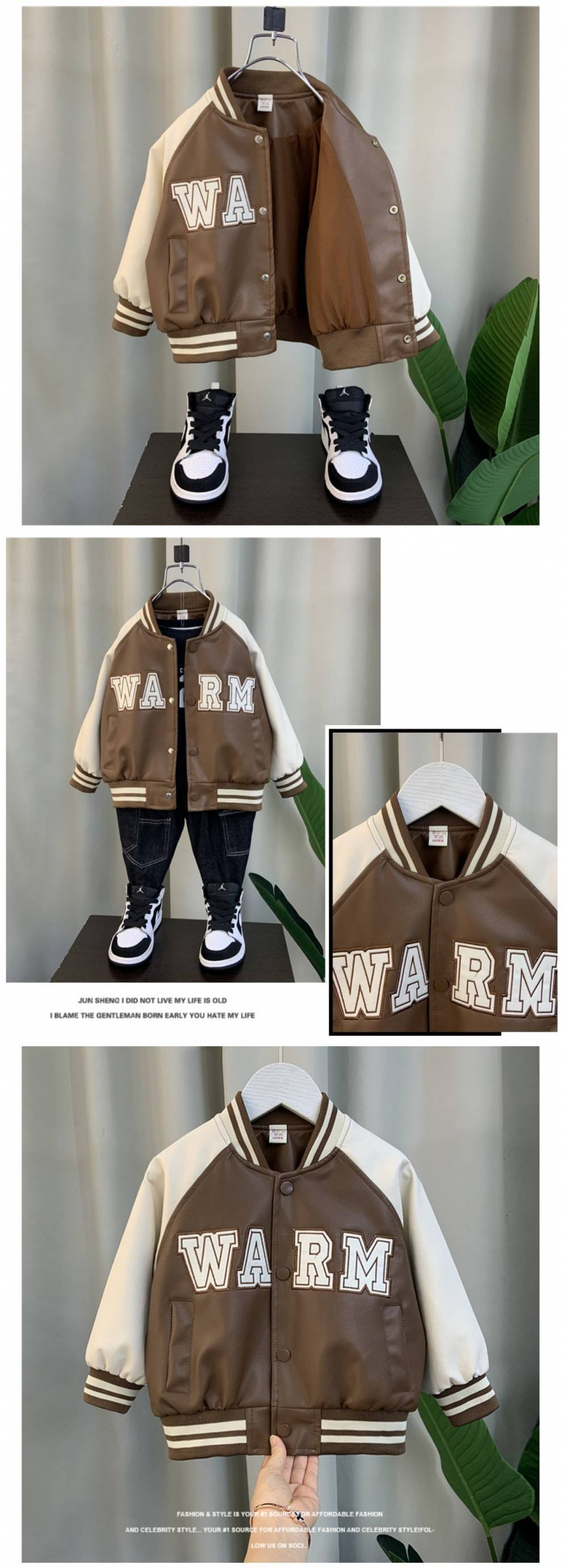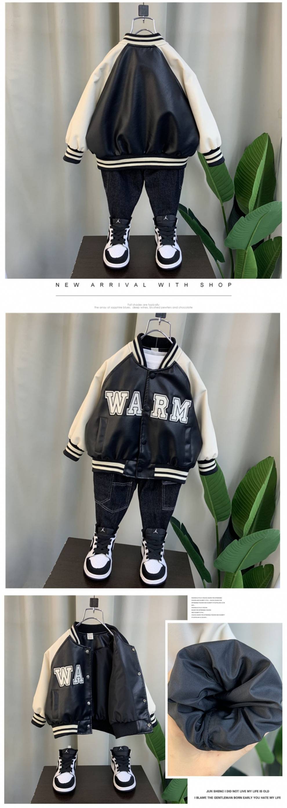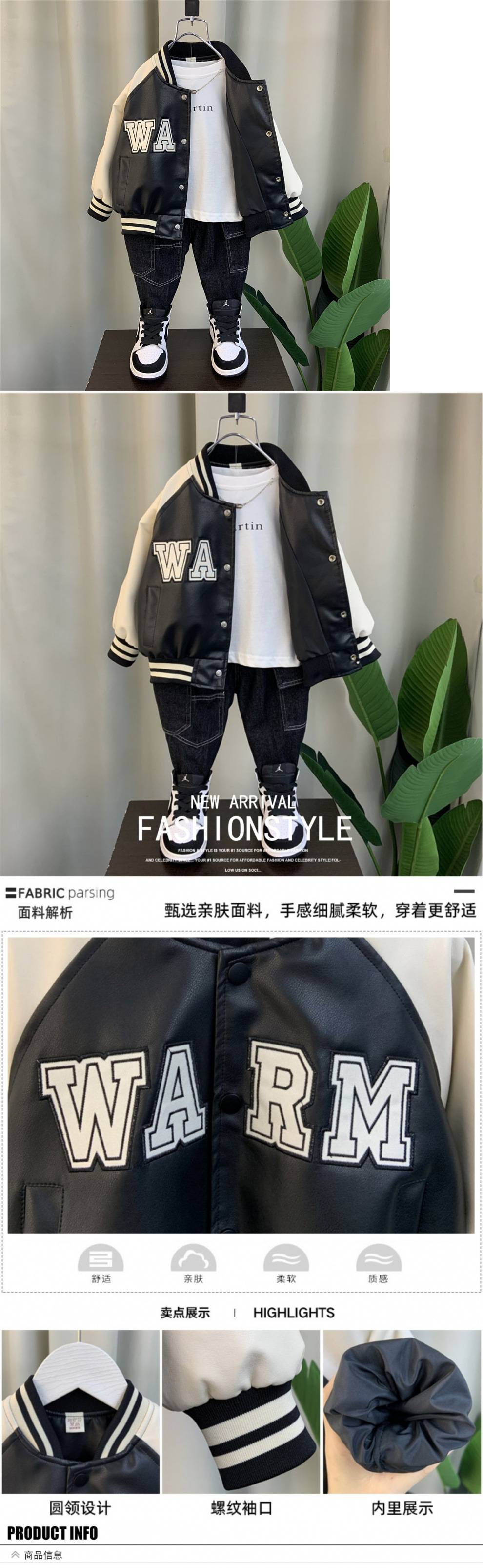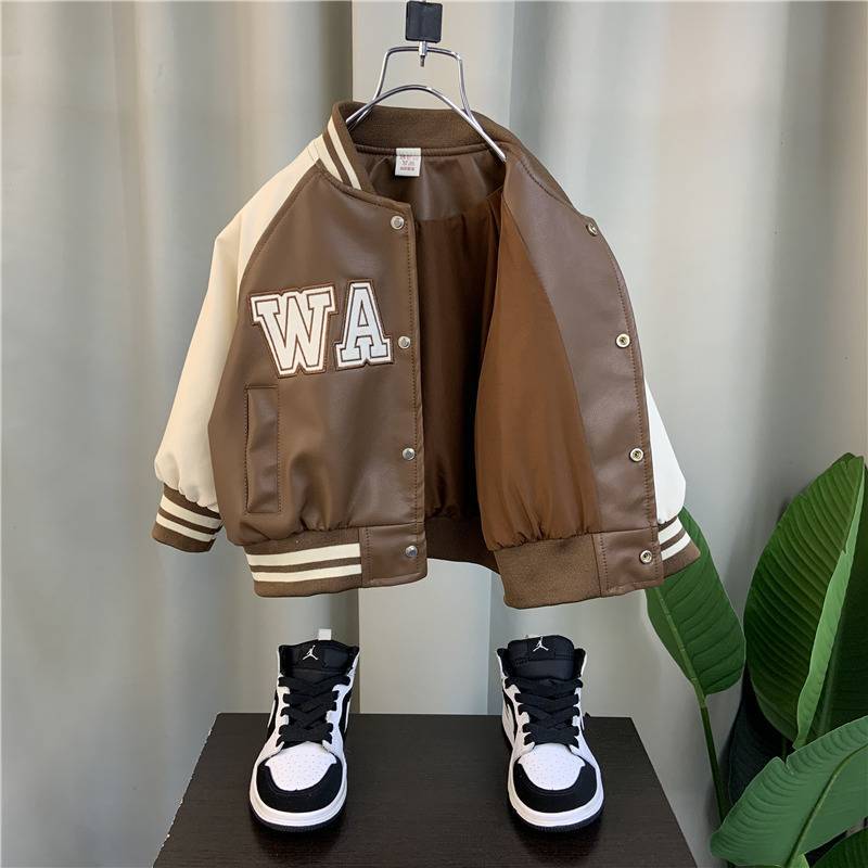 소년 야구 세트 코트 2024 새로운 서양 스타일 아기 봄과 가을 가죽 코트 어린이 더피 잘 생긴 가죽 자켓 탑스토어 가기