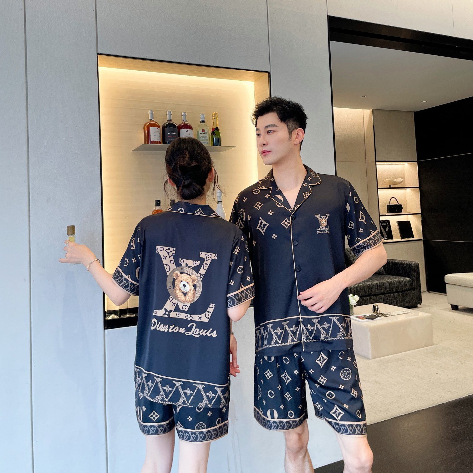 커플의 잠옷 새로운 고급 만화 곰 사계절 아이스 실크 홈 옷 여성 의류 남성 세트스토어 가기