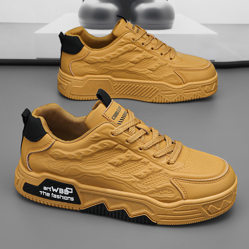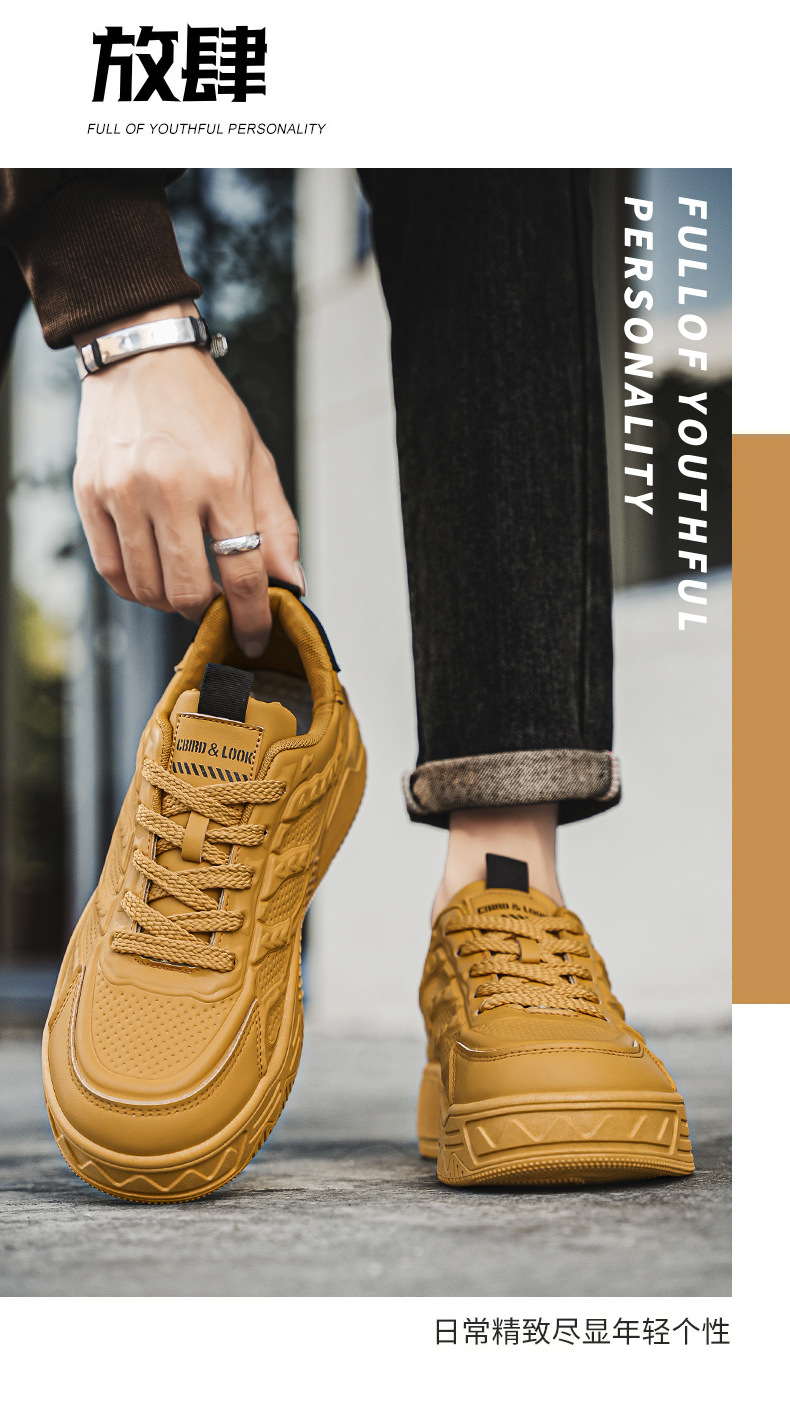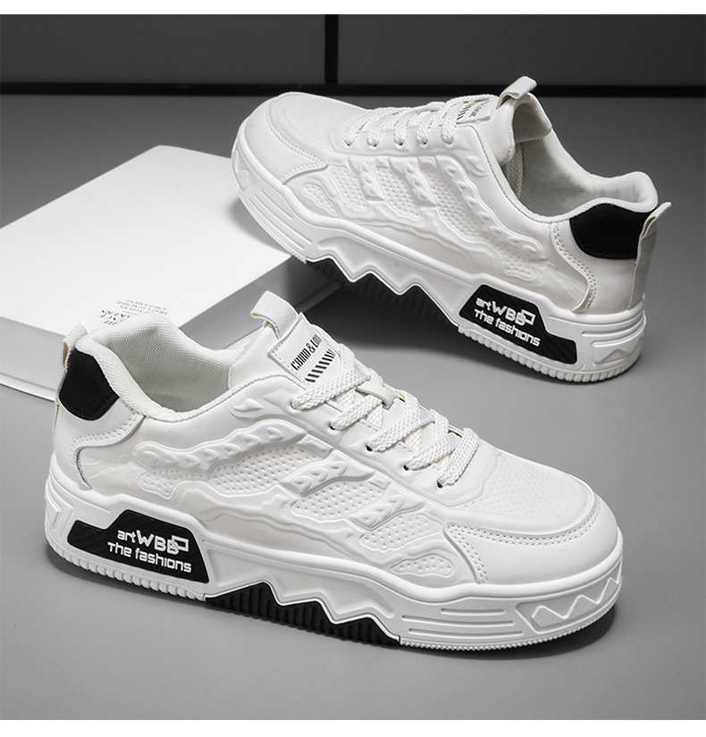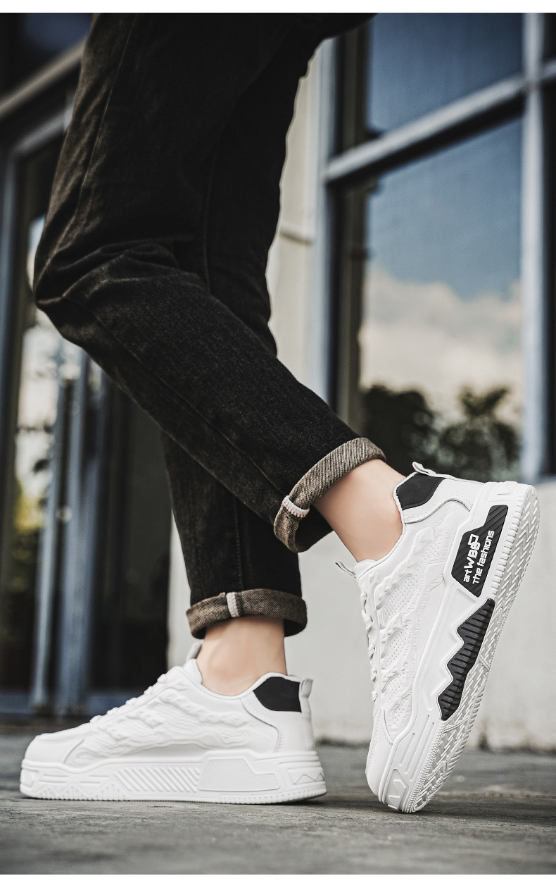 가을 새로운 남성 스포츠 화이트 신발 가죽 탑 펀칭 통기성 로우 탑 캐주얼 작업 하이트닝 보드 신발 남성 신발