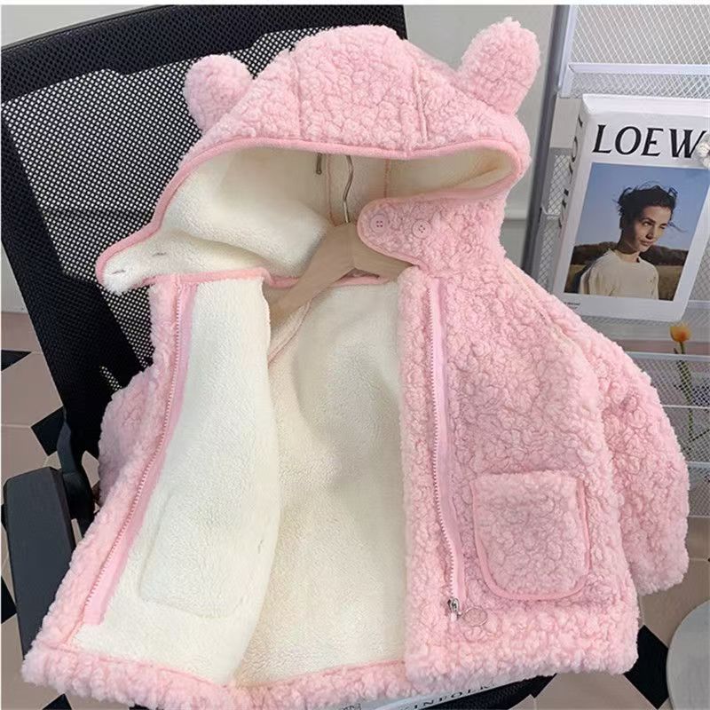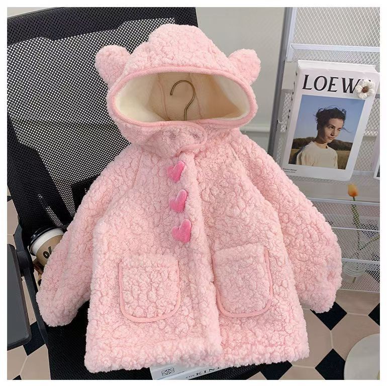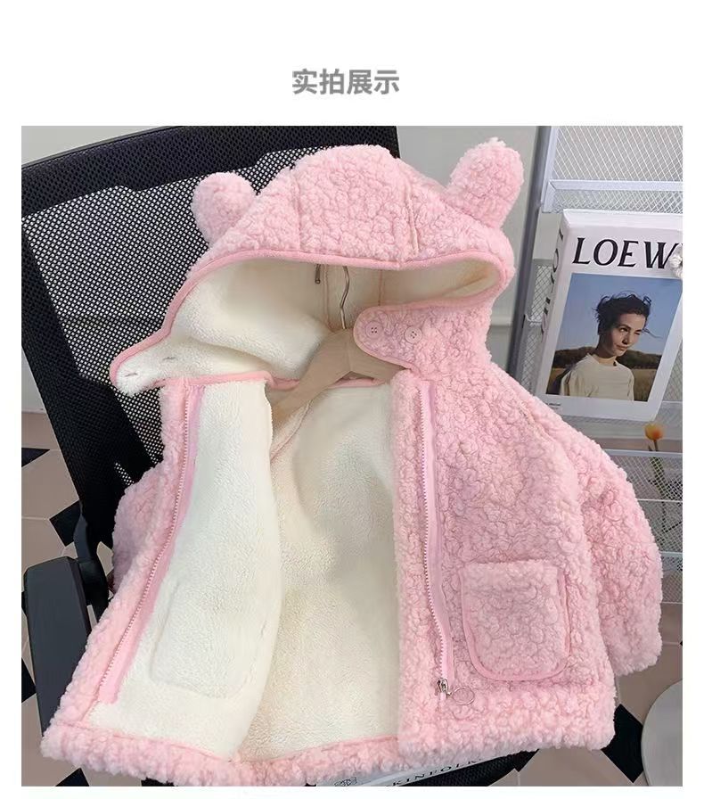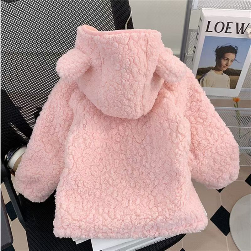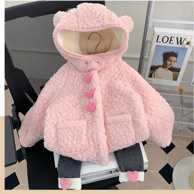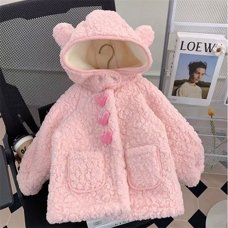2024 가을 겨울 새 여아 코트 기모 두꺼운 어린이 겨울 착용 아기의 서양식 양고기 양모 겨울 탑스토어 가기