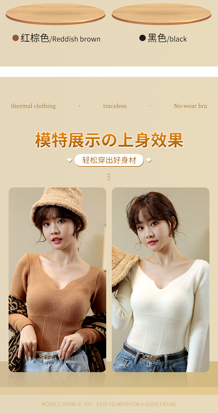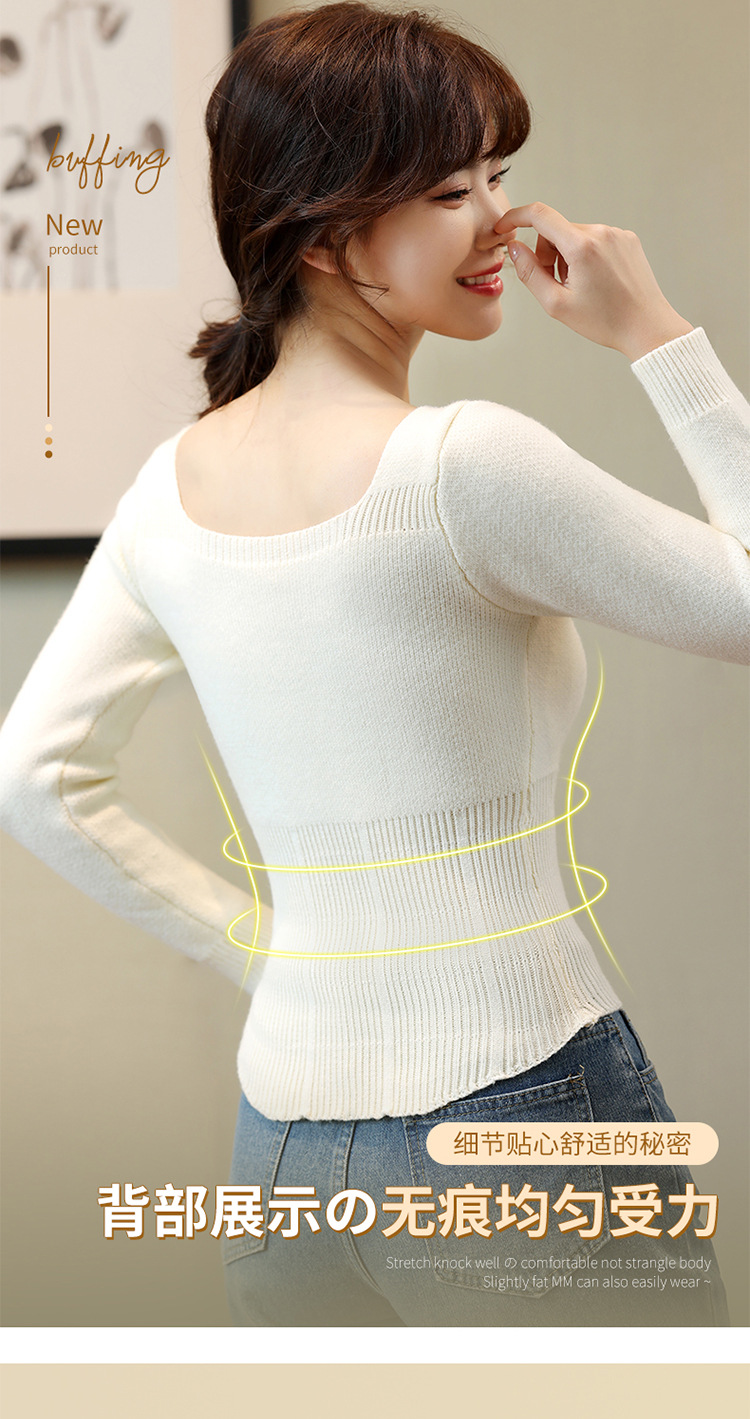 니트 스웨터 여성의 2024 년 새로운 가을 및 겨울 열 속옷 가슴 패드 스웨터베이스 셔츠로 두껍게 착용 긴 소매 탑스토어 가기