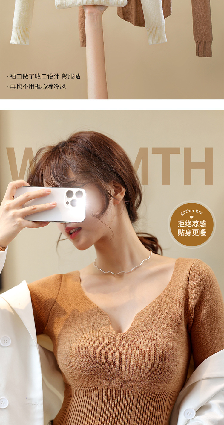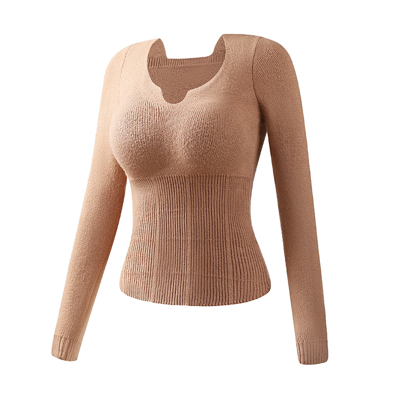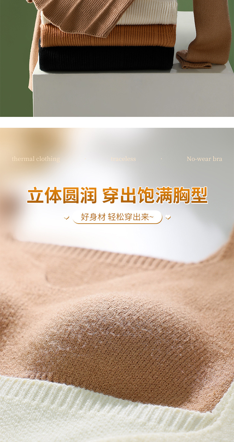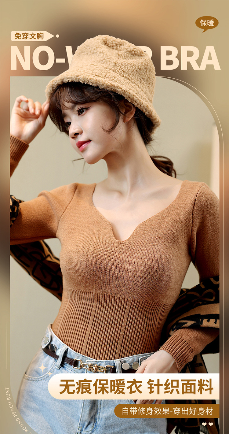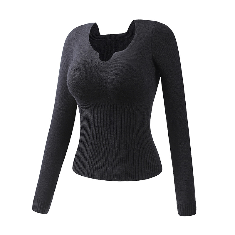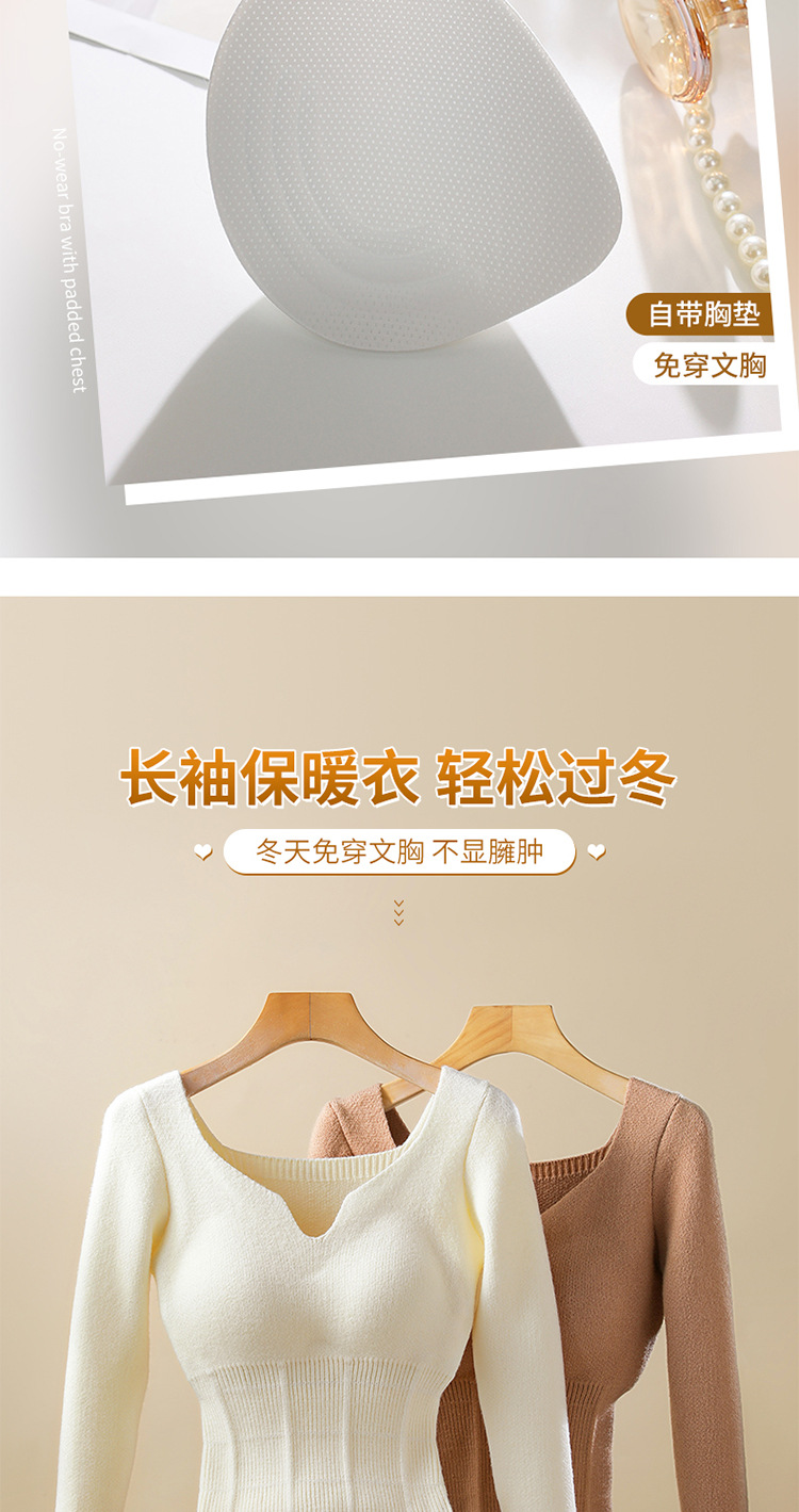 니트 스웨터 여성의 2024 년 새로운 가을 및 겨울 열 속옷 가슴 패드 스웨터베이스 셔츠로 두껍게 착용 긴 소매 탑