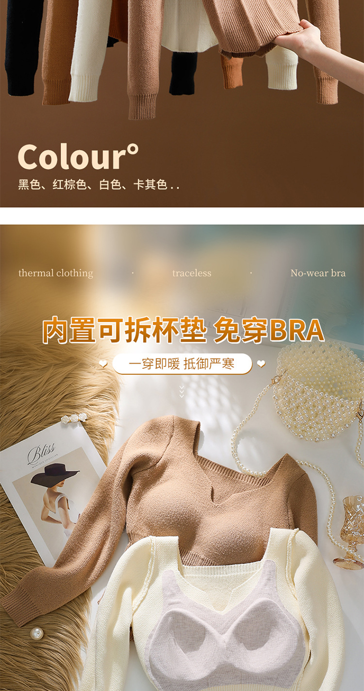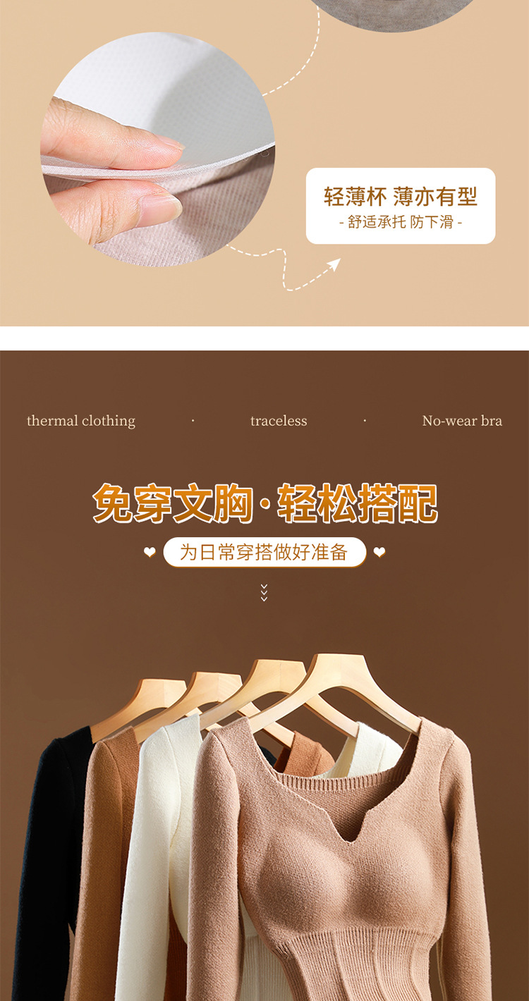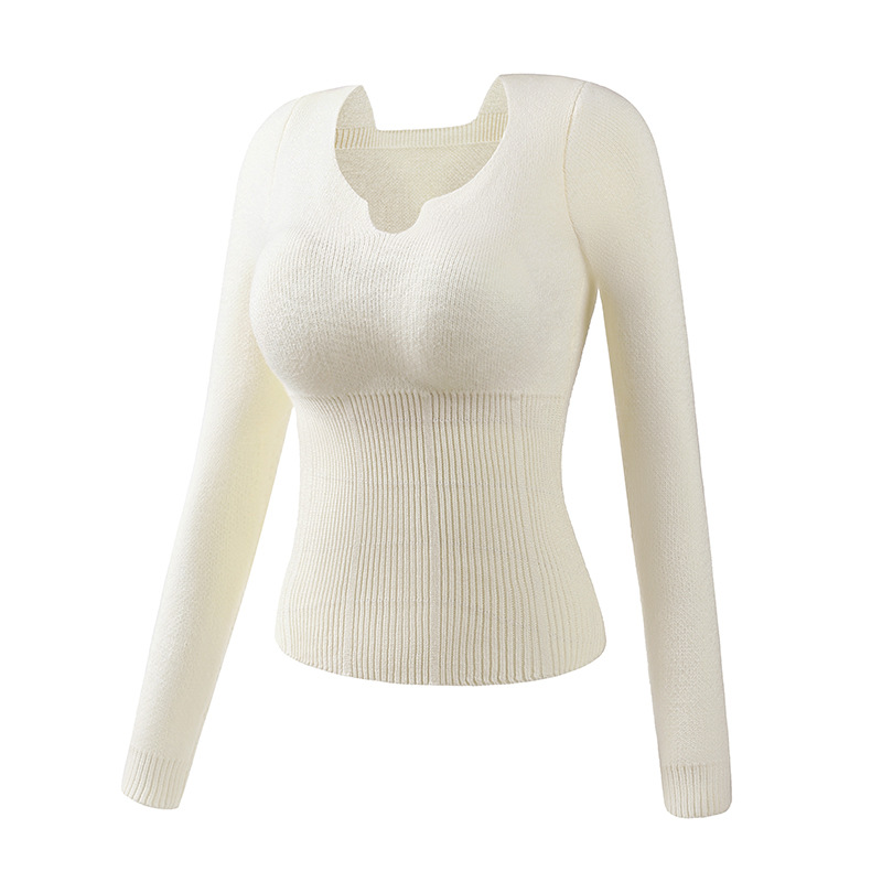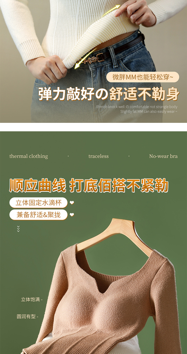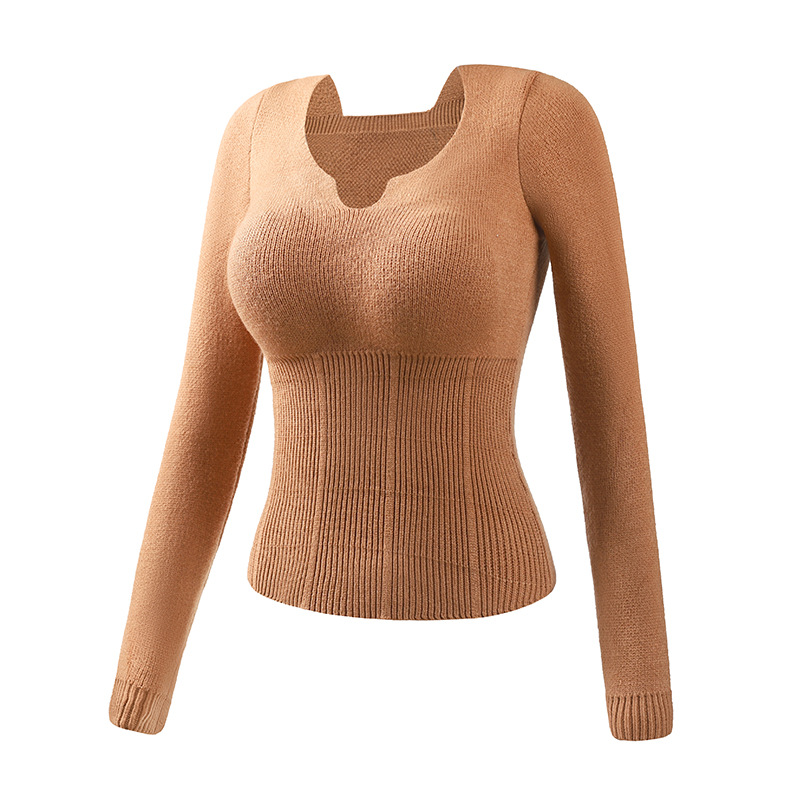 니트 스웨터 여성의 2024 년 새로운 가을 및 겨울 열 속옷 가슴 패드 스웨터베이스 셔츠로 두껍게 착용 긴 소매 탑