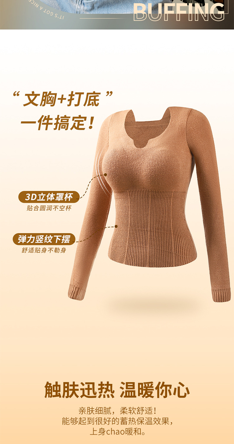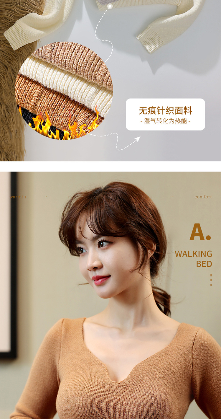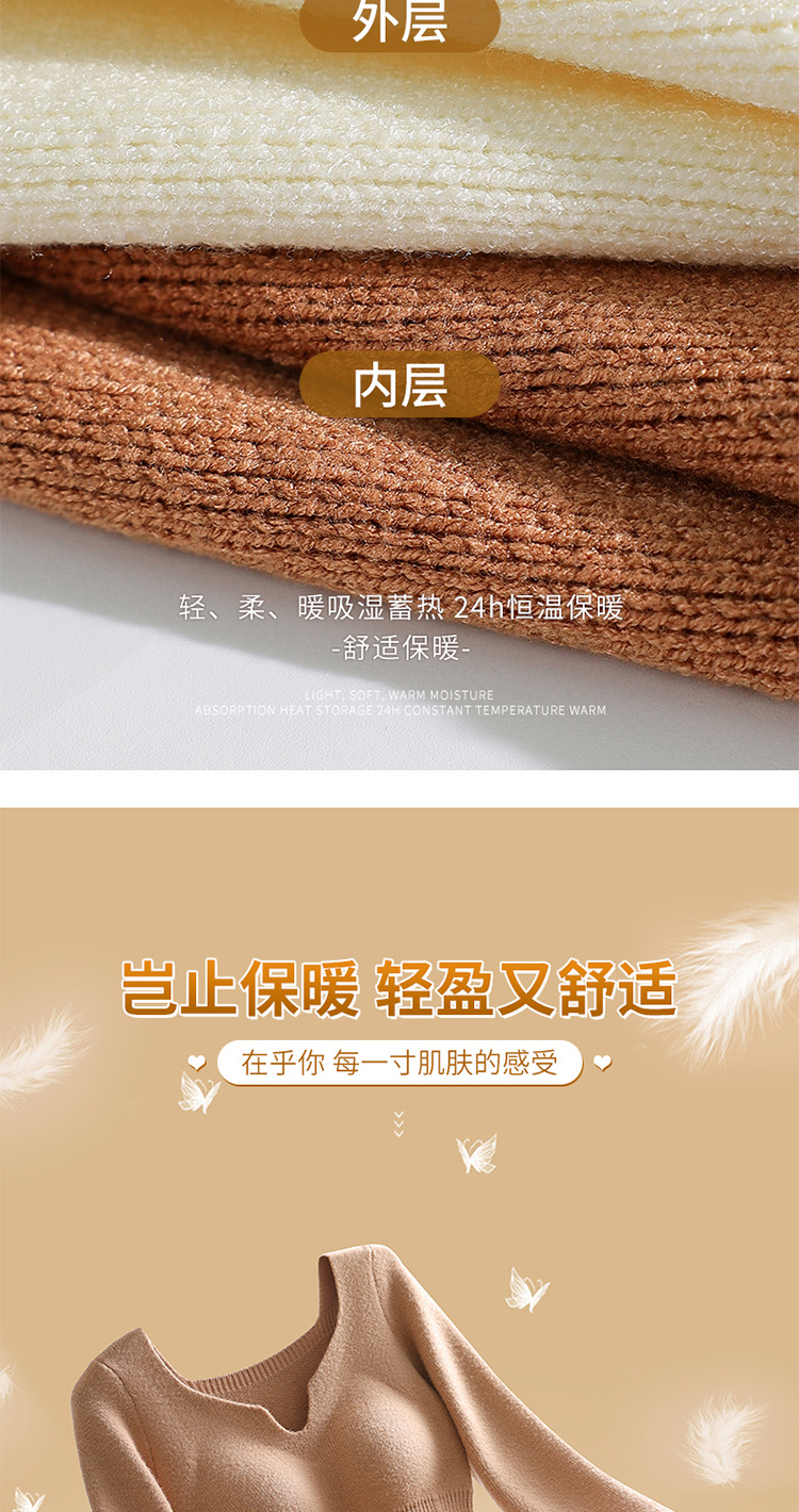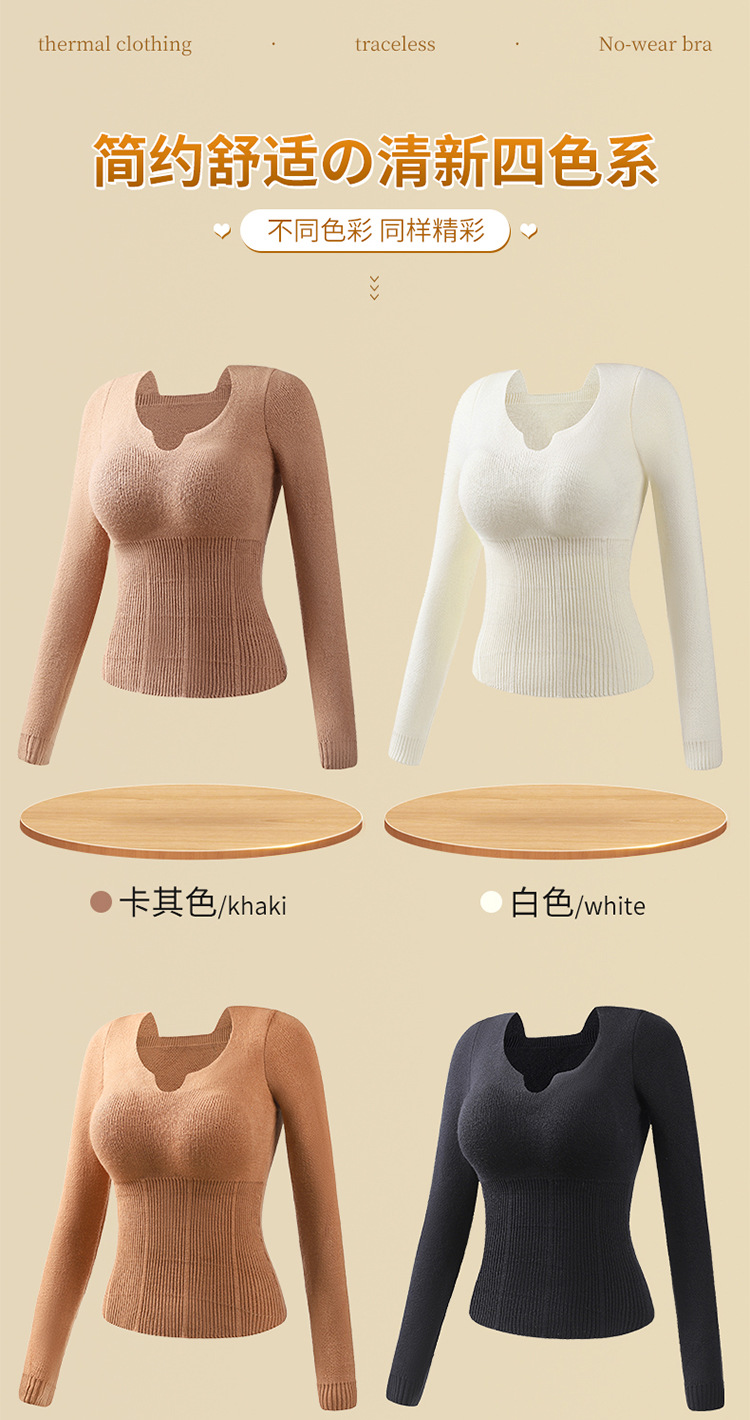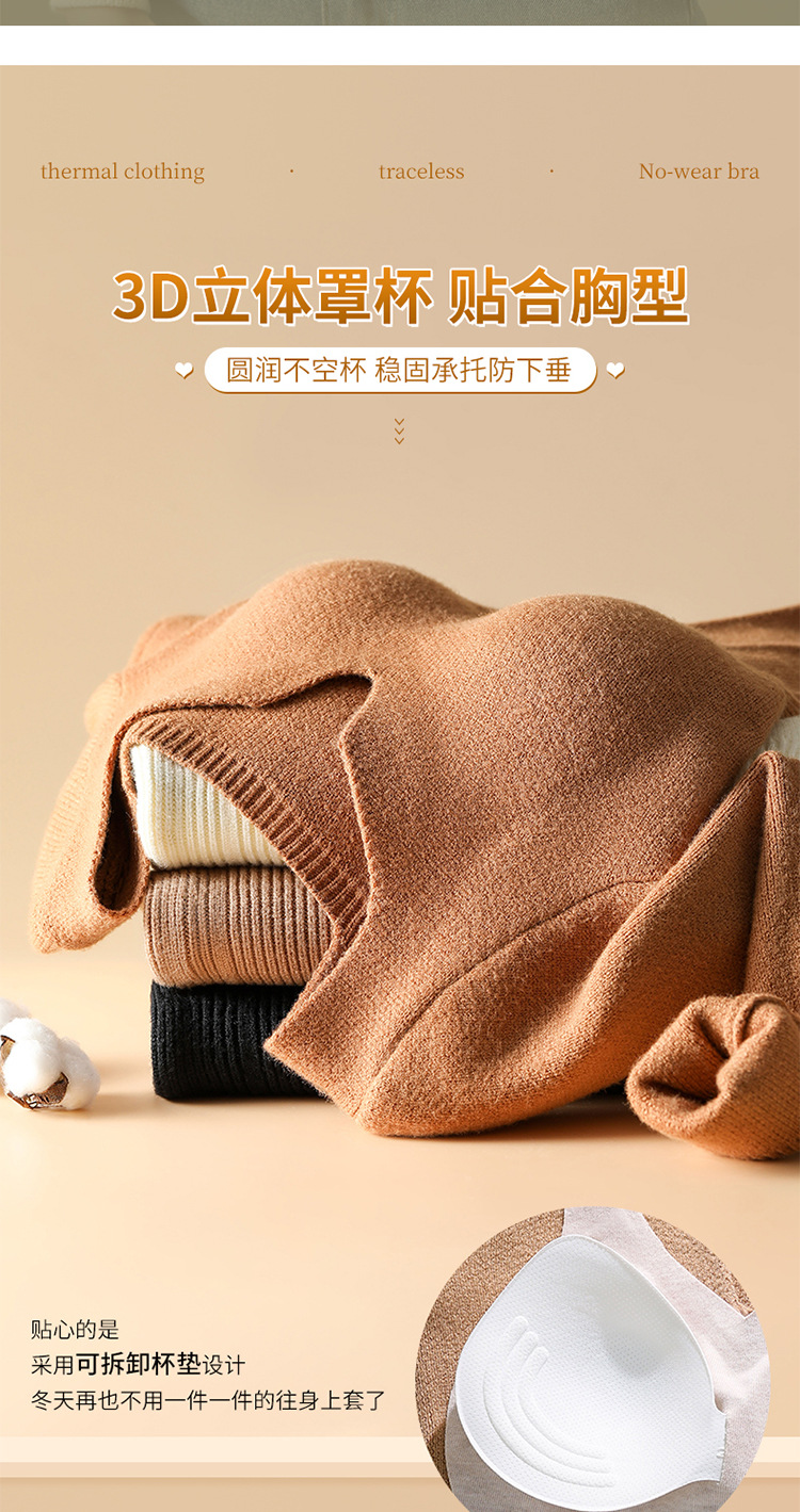니트 스웨터 여성의 2024 년 새로운 가을 및 겨울 열 속옷 가슴 패드 스웨터베이스 셔츠로 두껍게 착용 긴 소매 탑