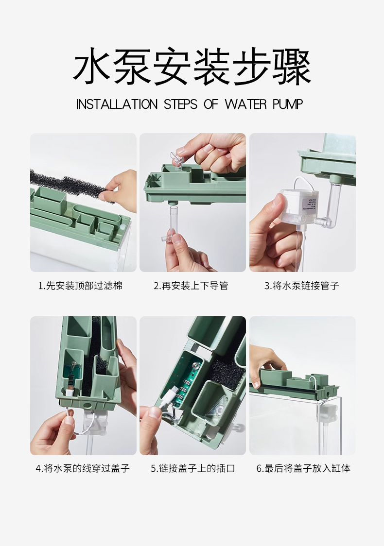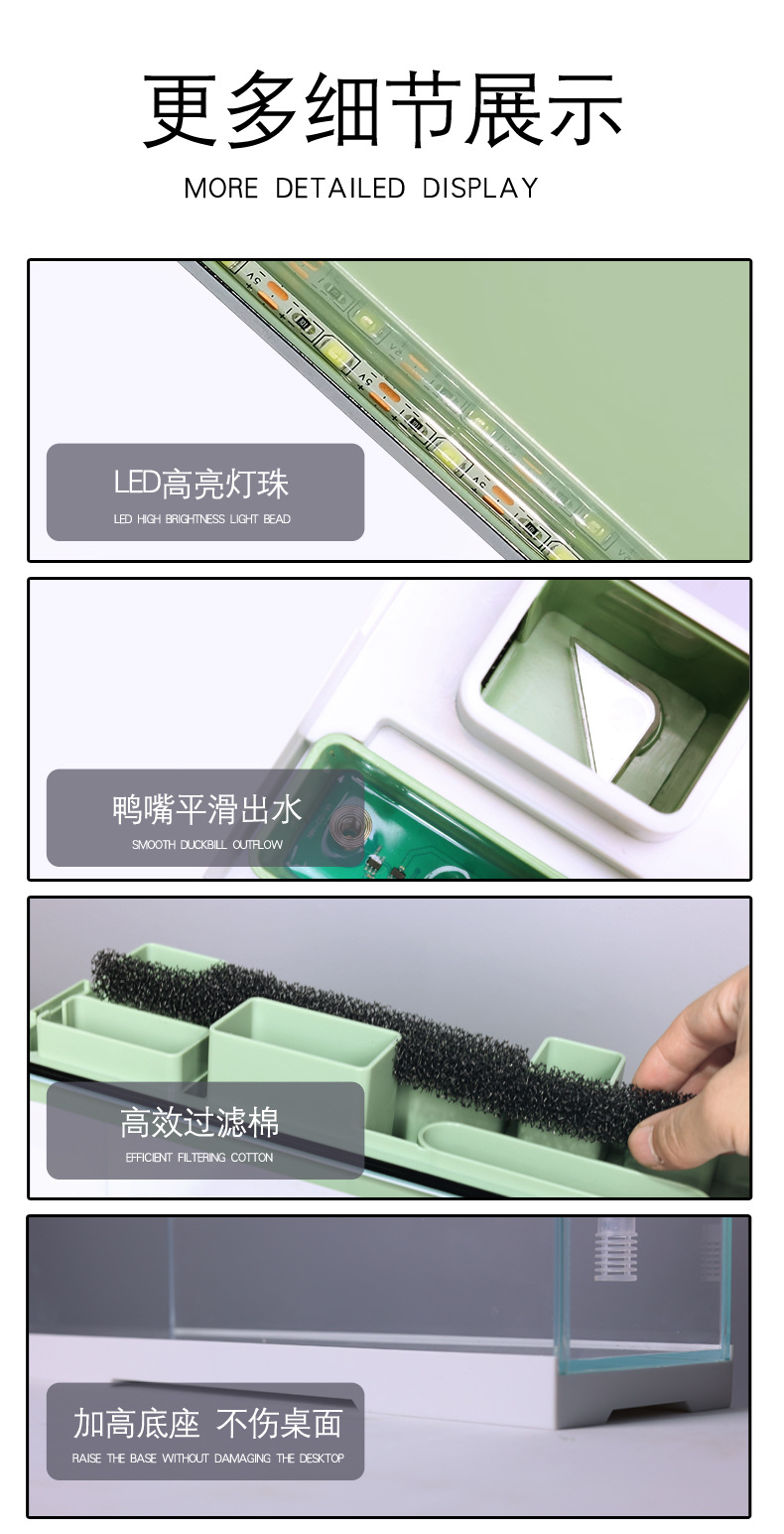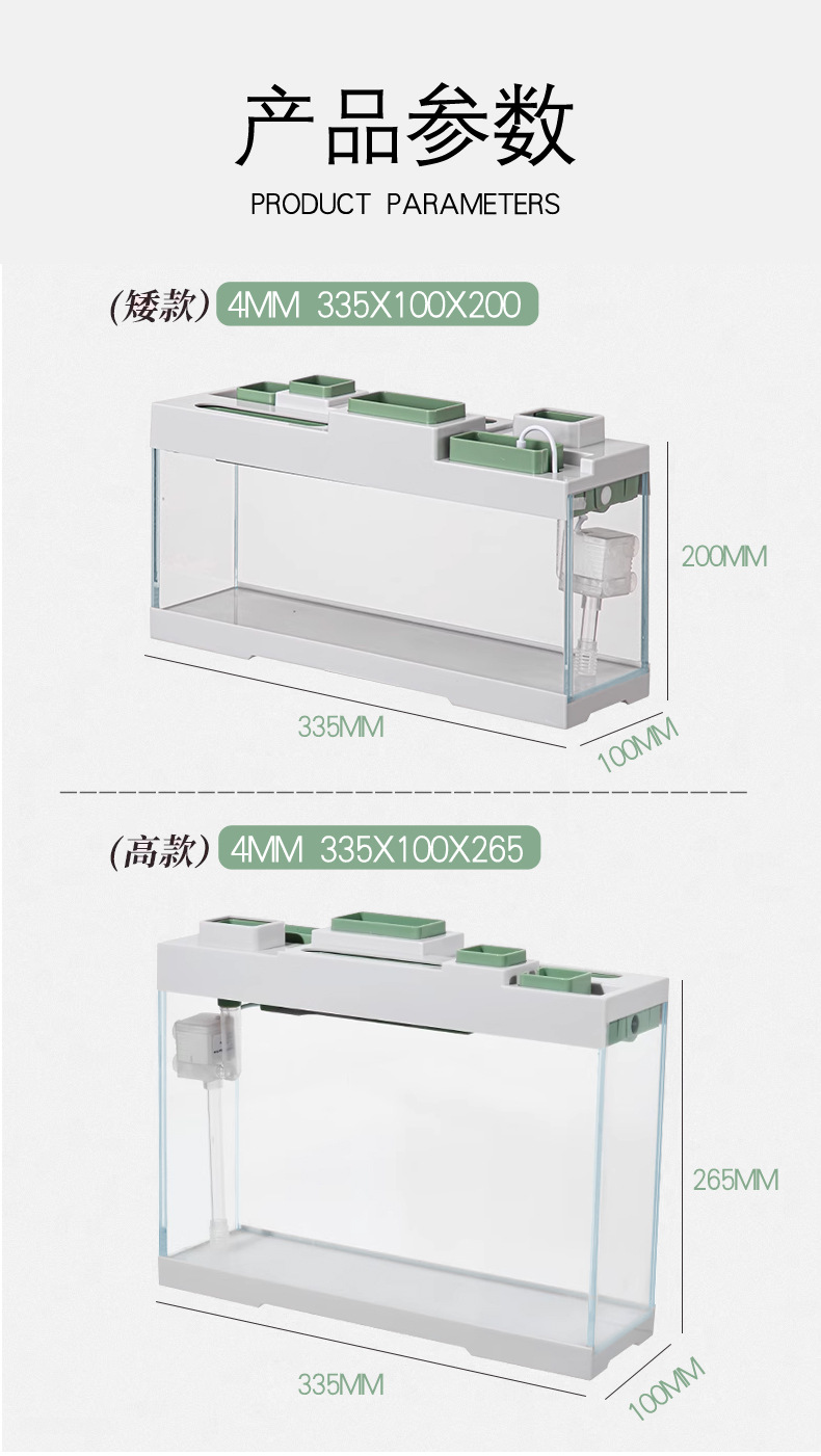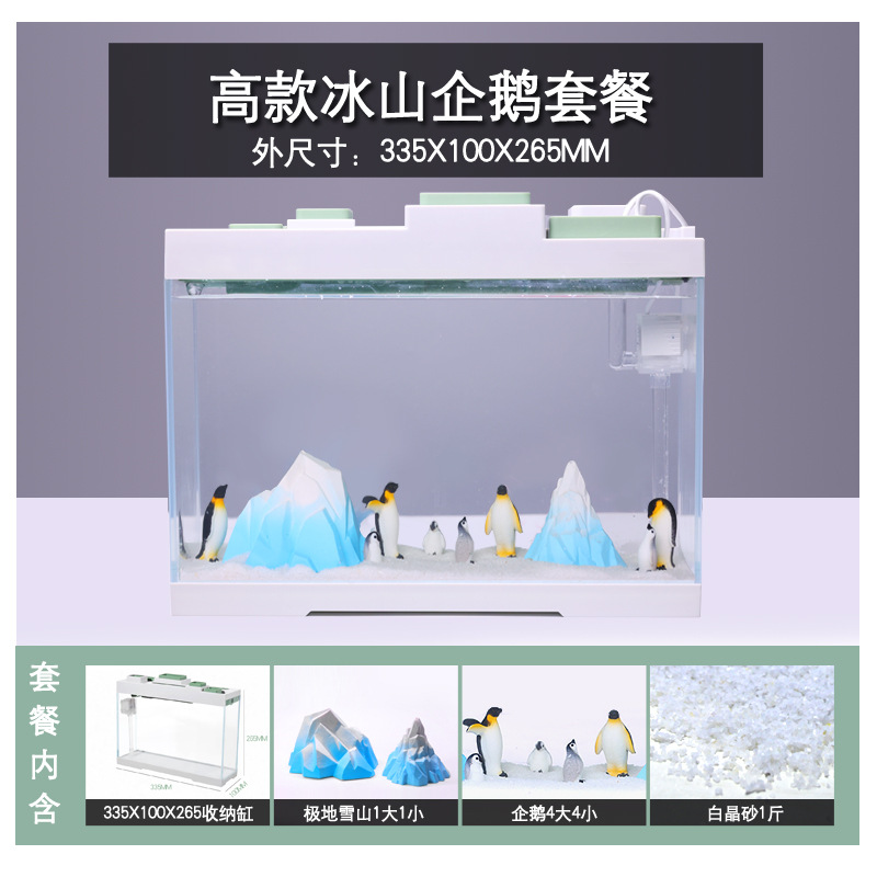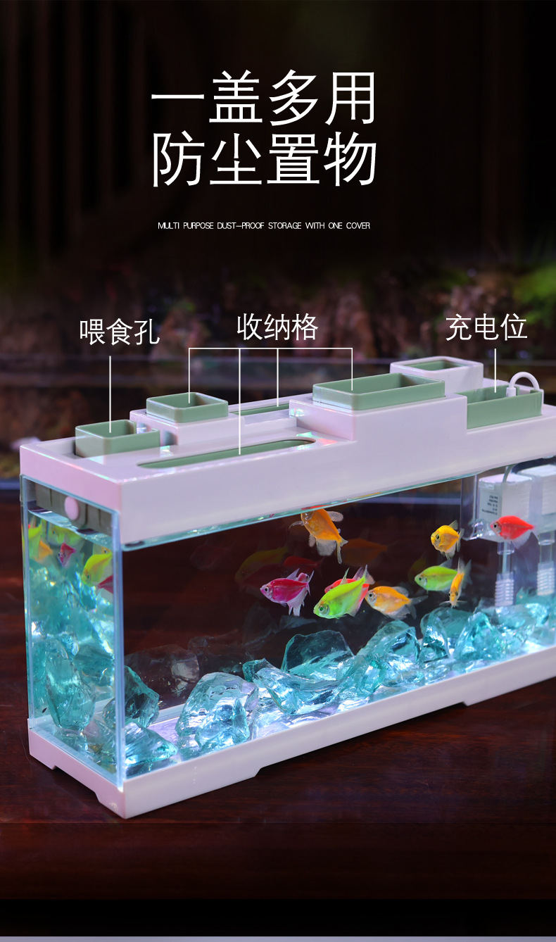 조명과 필터가 내장된 데스크탑 오피스용 초백유리 창턱 좁고 긴 평면 수족관 어항 금붕어 어항스토어 가기